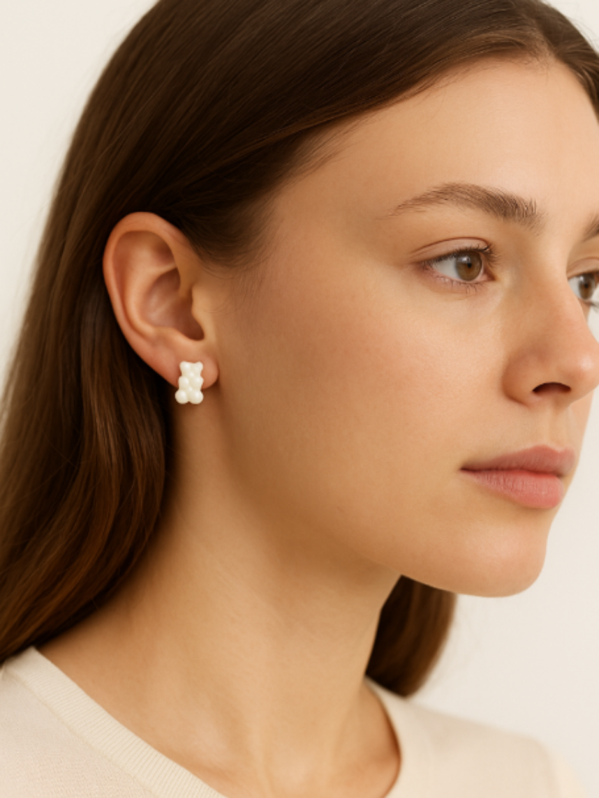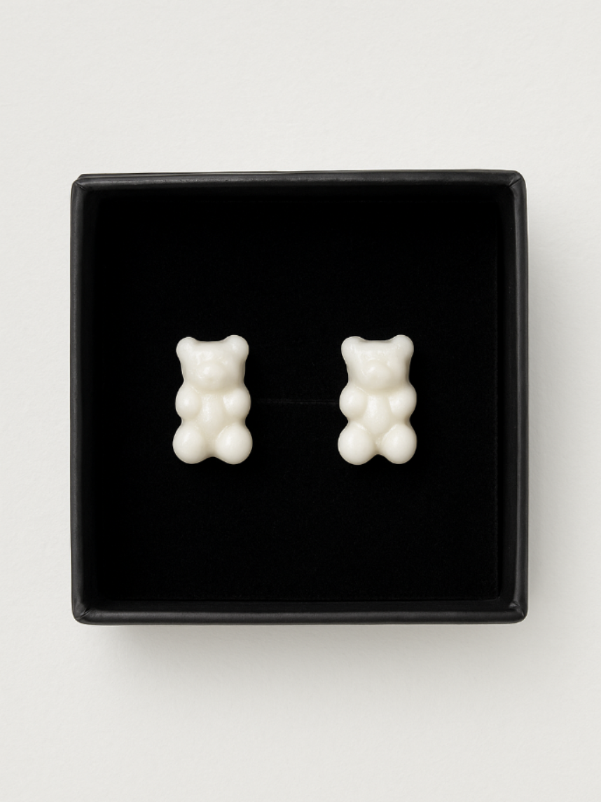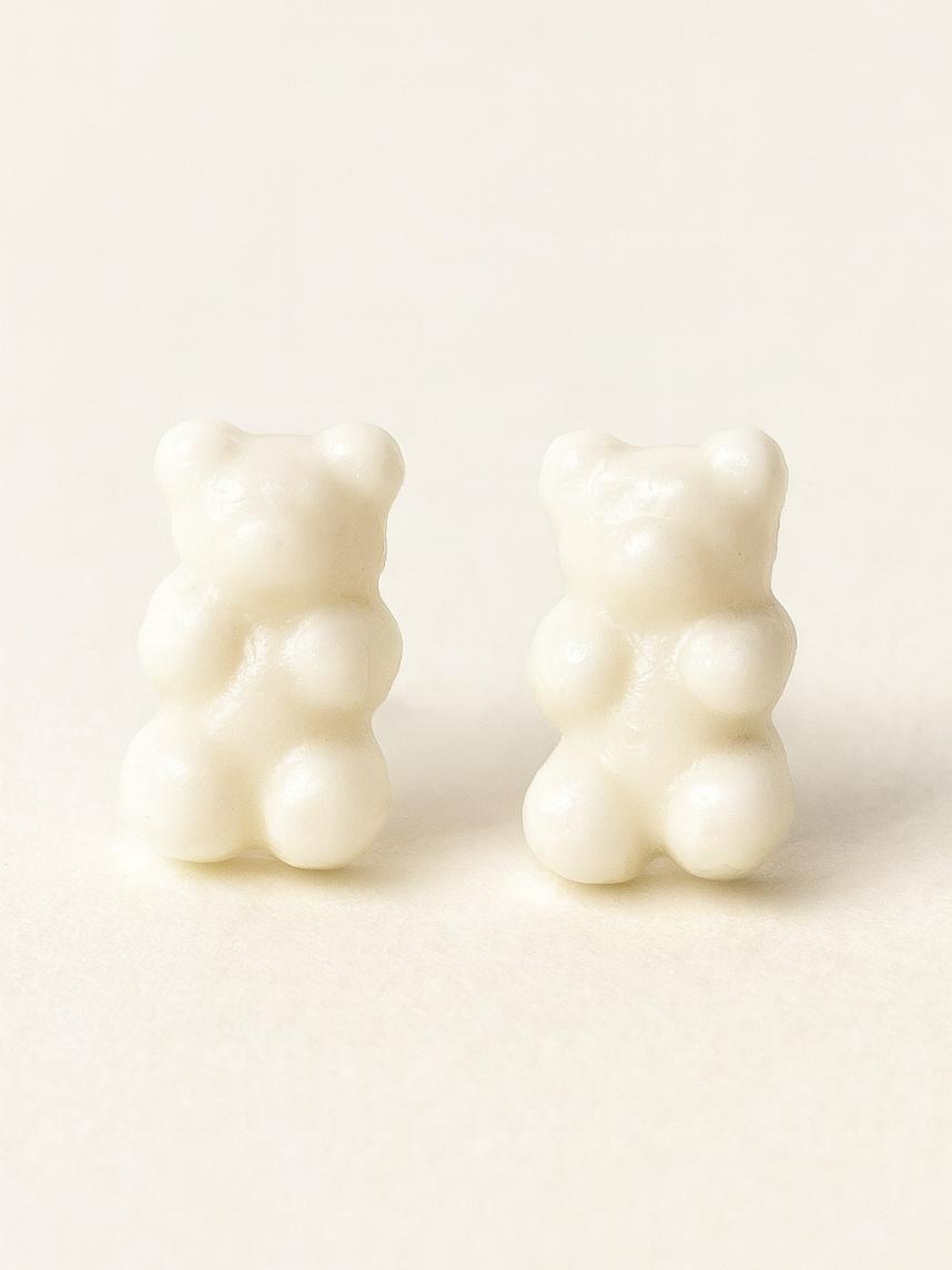 Сережки-гвоздики «Мармеладные мишки», белые, фарфор