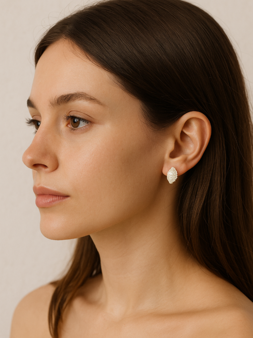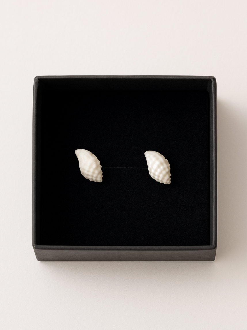 Милые серьги-гвоздики, выполненные из высококачественного немецкого фарфора Mont Blank в виде изящных ракушек-улиток.