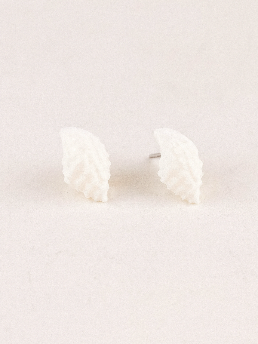Сережки-гвоздики «Ракушки-улитки», белые, фарфор, в ассортименте