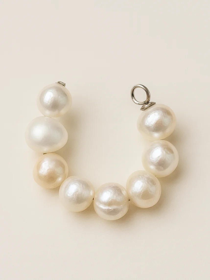 Кафф из натурального мелкого жемчуга — лёгкий штрих, который придаёт образу естественную мягкость и женственность.