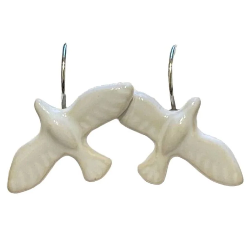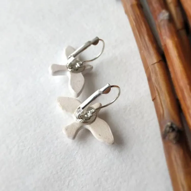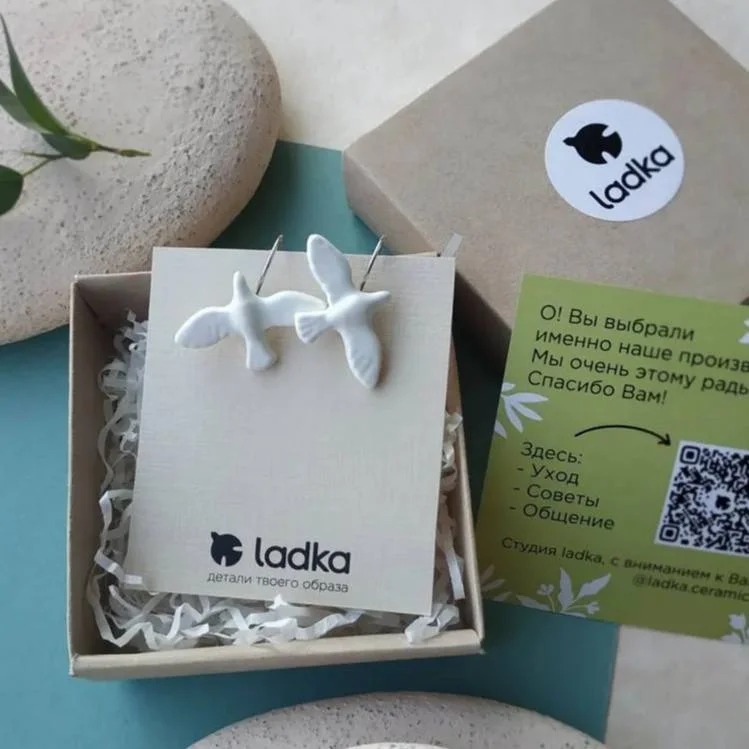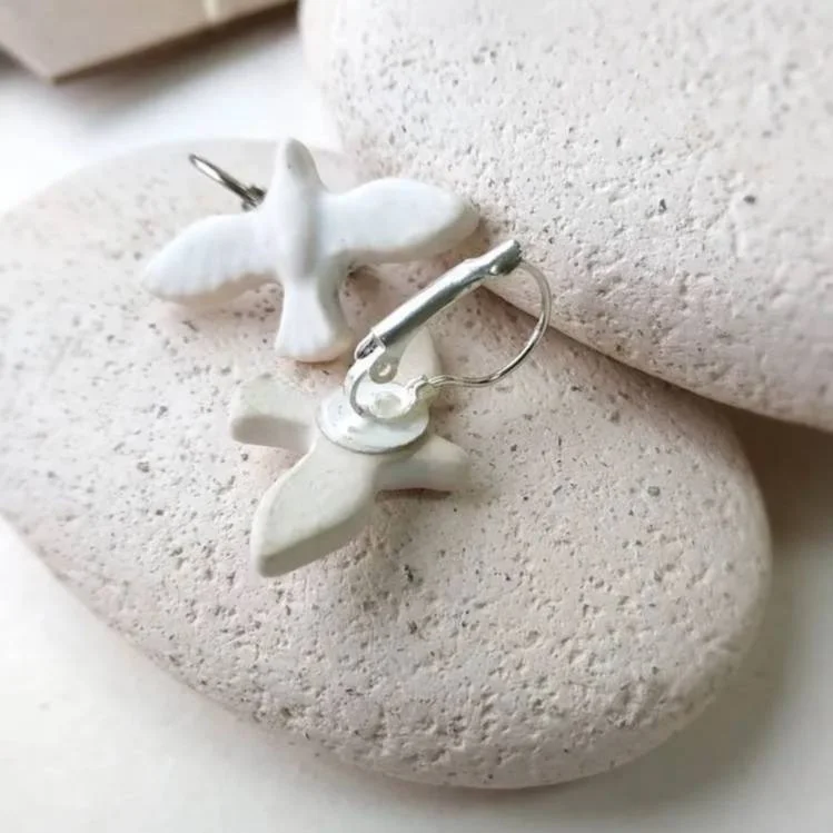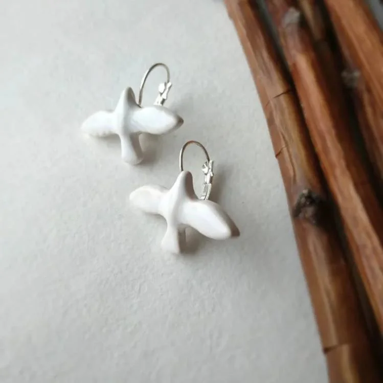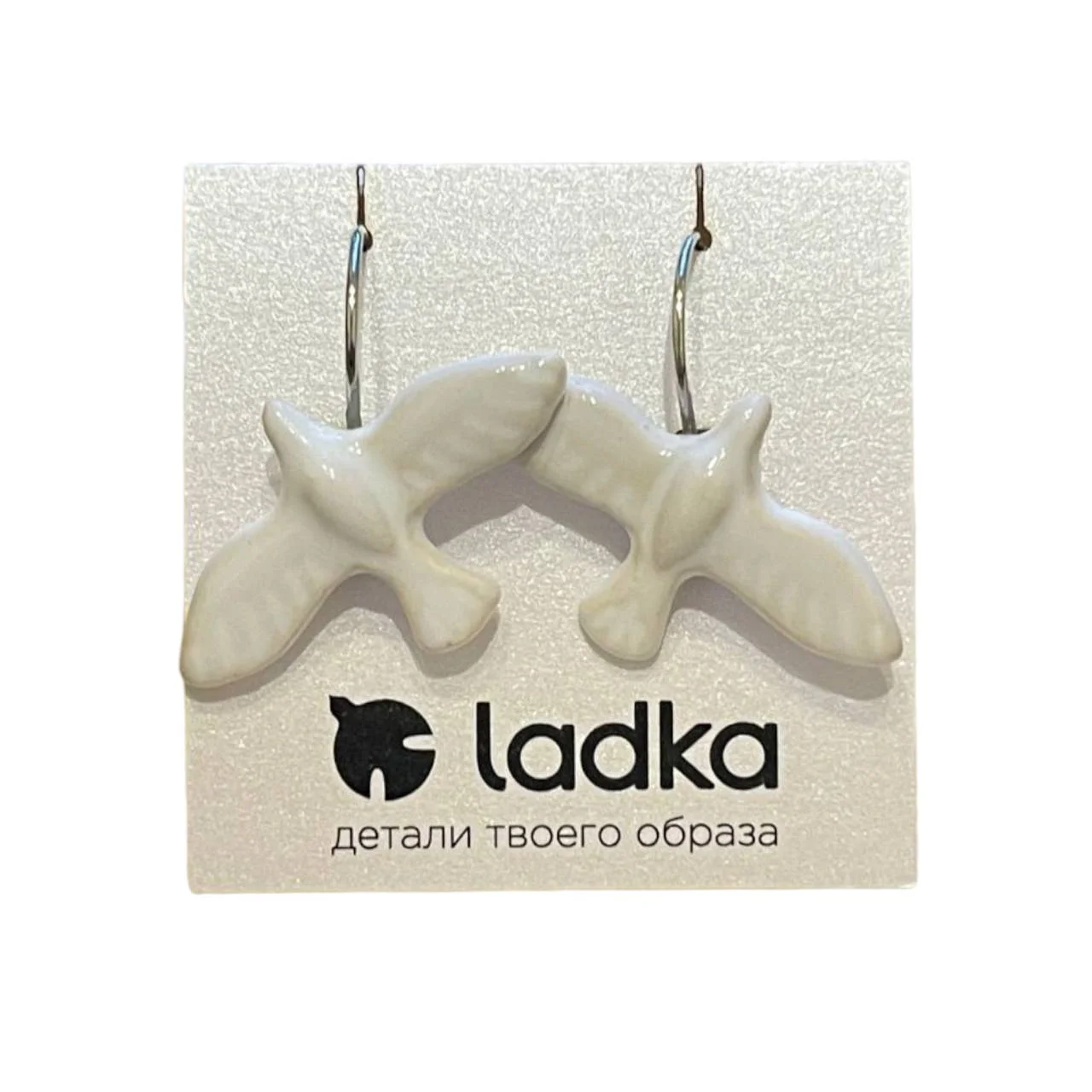 Серьги «Белые пташки», фаянсовая глина