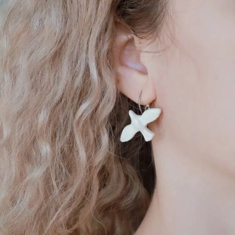 Лёгкие серьги птички - символ лёгкости, мира, свободы, движения вперёд! Благодаря белому цвету и изящной форме, они хорошо комплектуются с изделиями из благородных металлов. Серёжки можно надеть и на официальную встречу, прогулку или праздничную вечеринку.