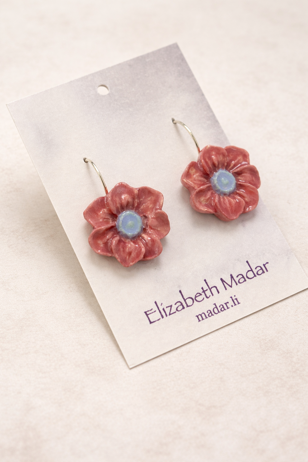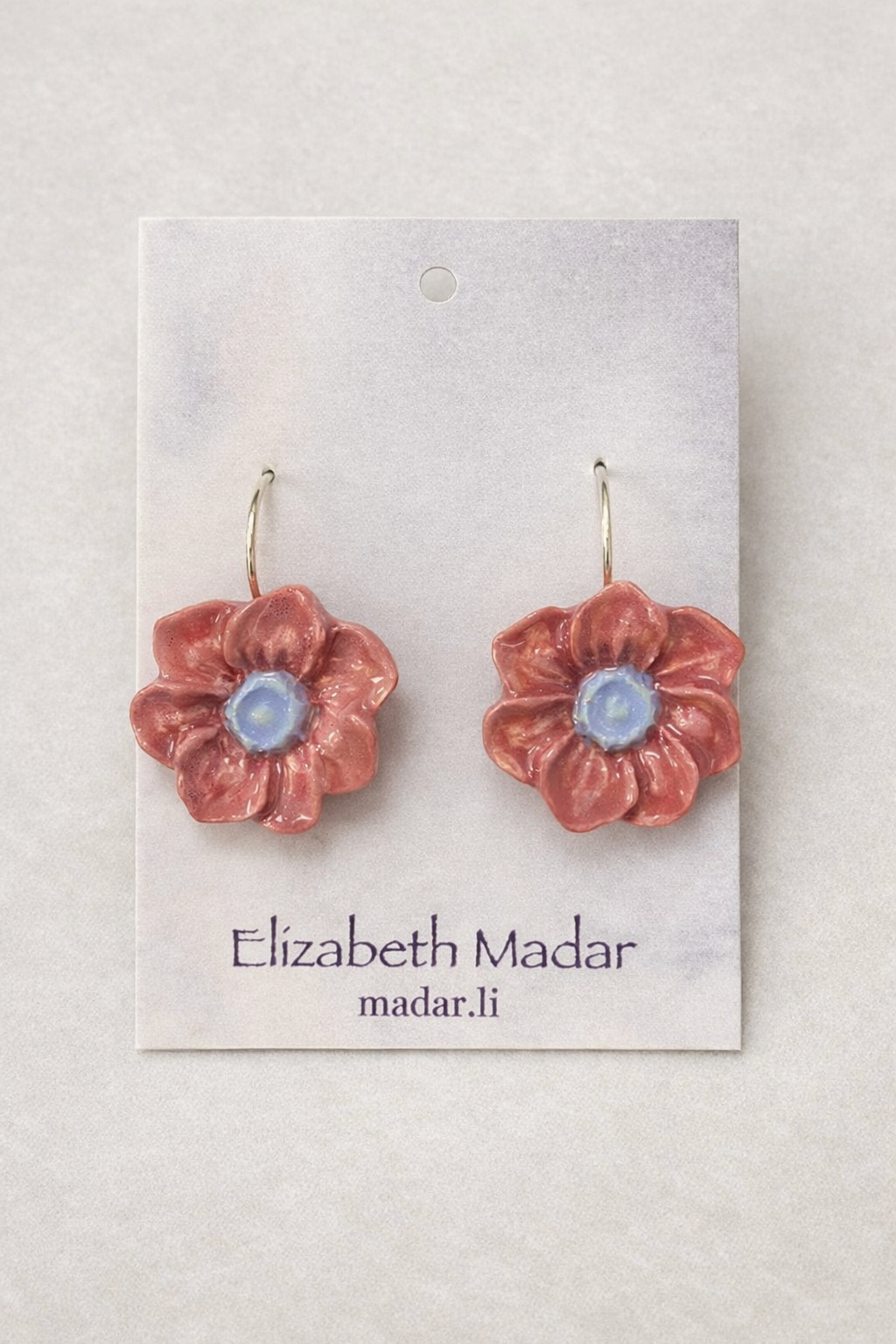 Пара аккуратных серёжек в виде цветов, украшения изготовлены вручную дизайнером-керамистом Elizabeth Madar из Санкт-Петербурга.