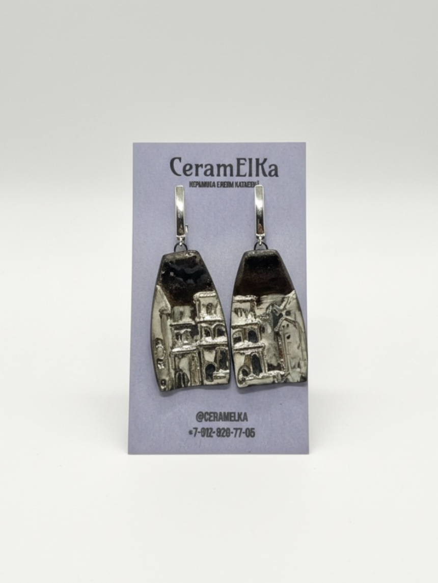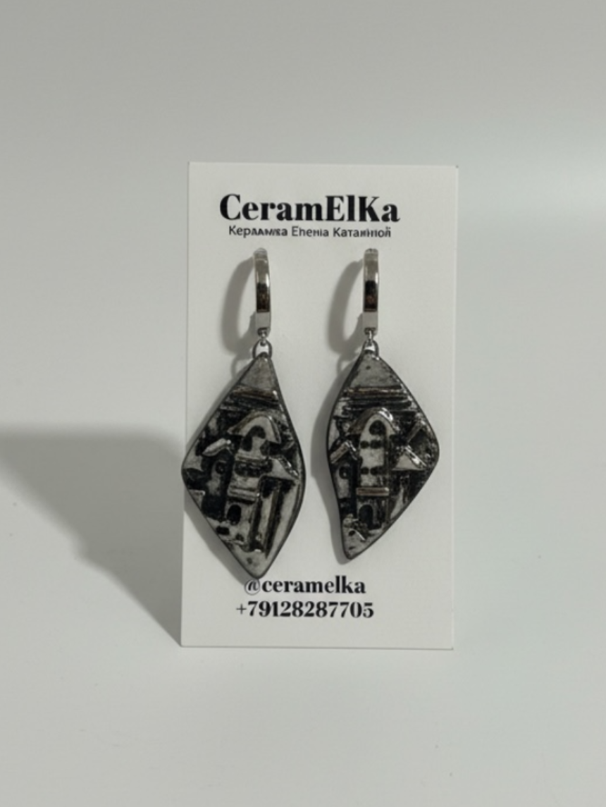 Серьги из керамики «Город» - это яркие и оригинальные украшения, выполненные вручную керамисткой Еленой Катаевой из Кирова.