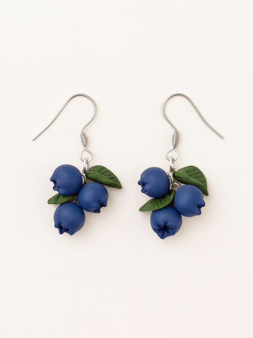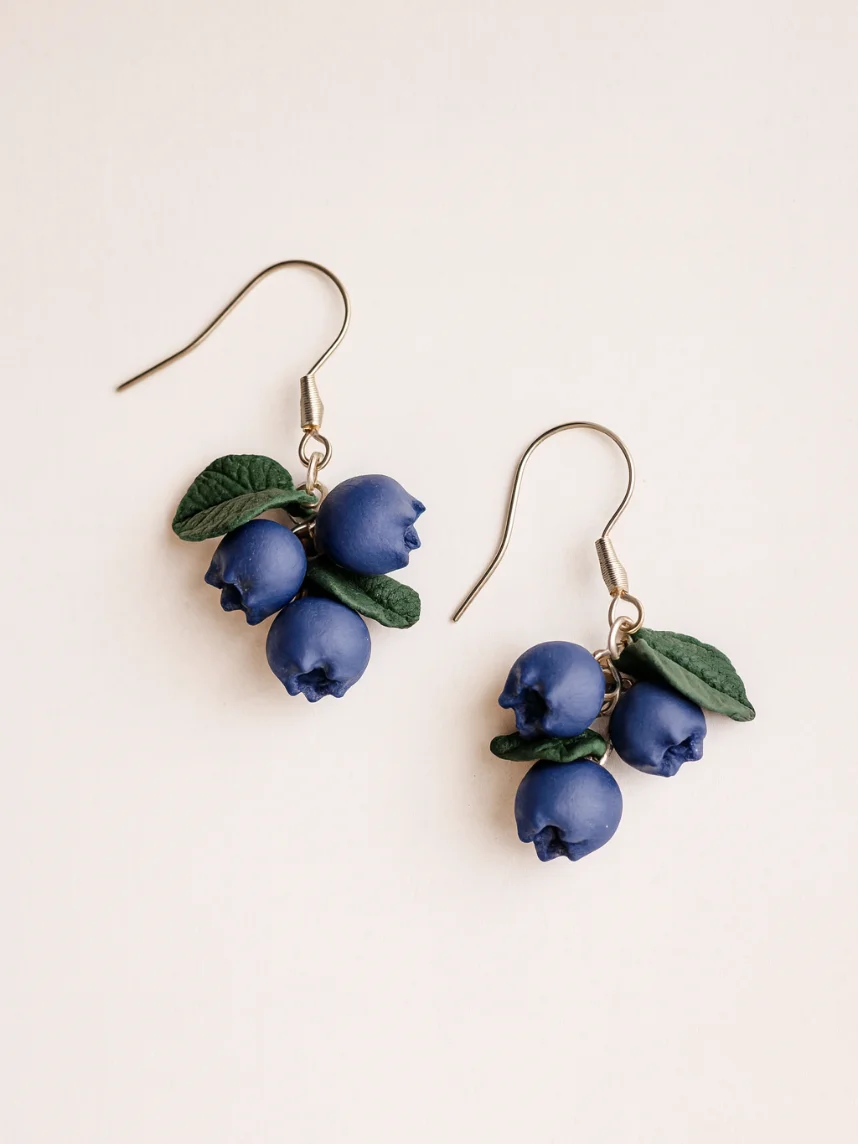 Серьги «Голубика с листиком» созданы из запекаемой полимерной глины вручную талантливым мастером Яной Насоновой.