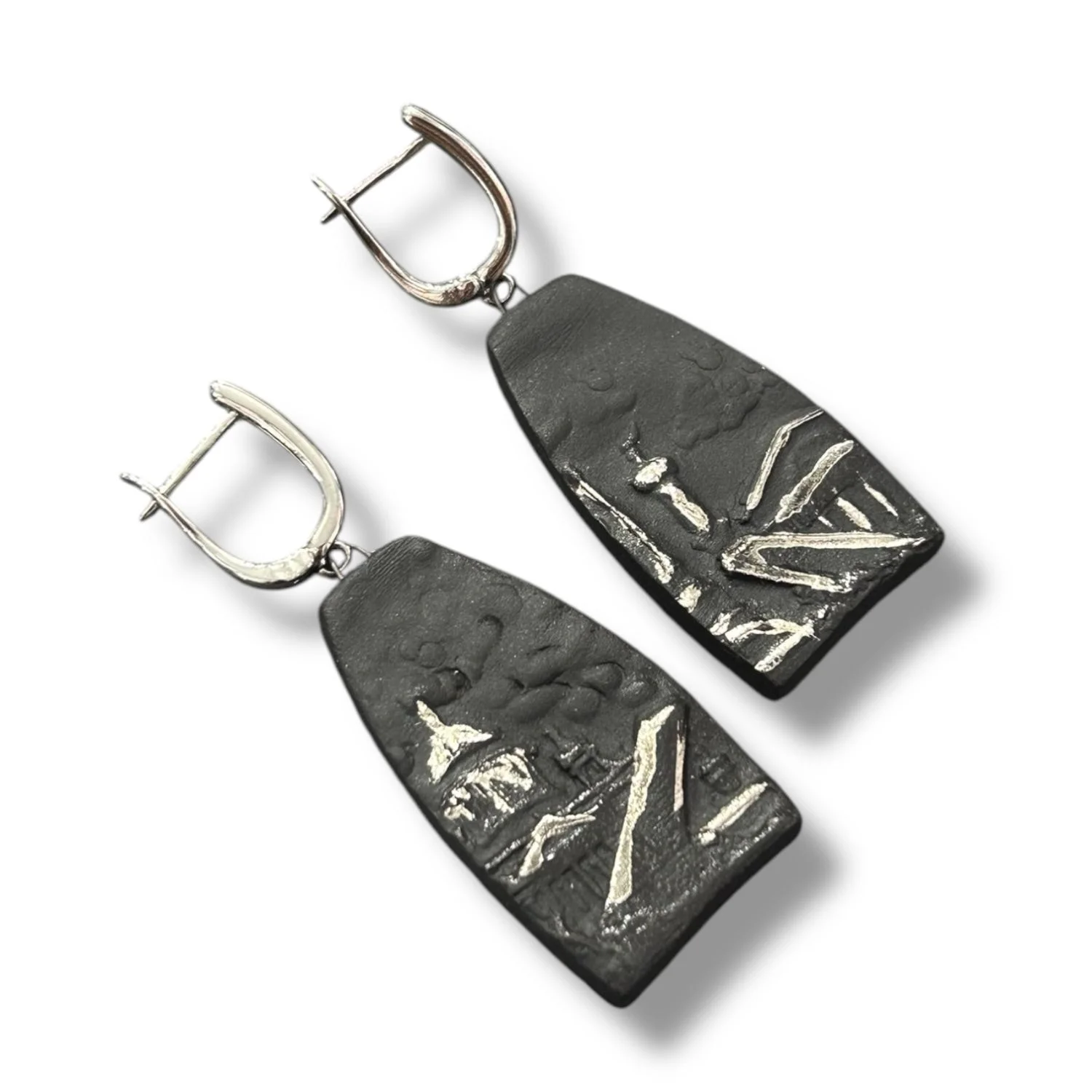 Серьги КерамЕлКа «Город», фарфор, чёрные, матовые