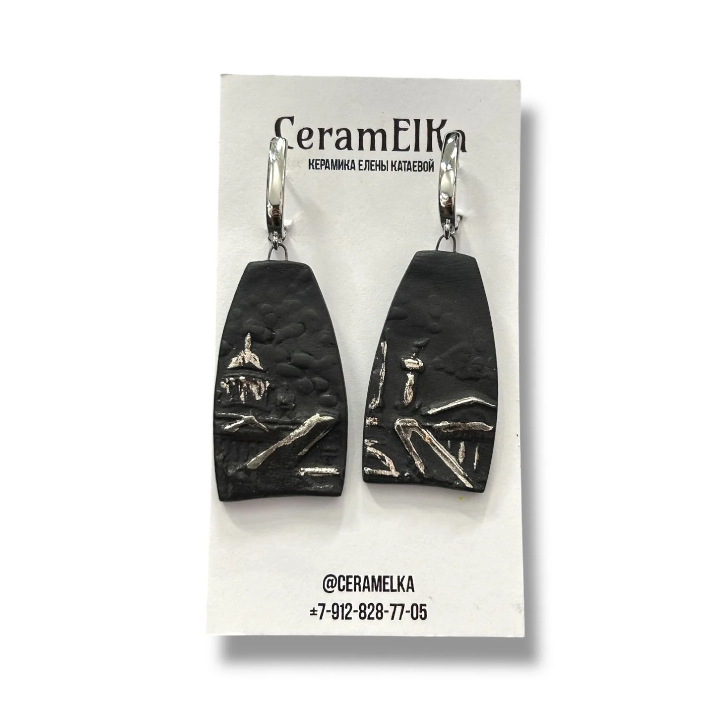 Серьги из керамики «Город» - это яркие и оригинальные украшения, выполненные вручную керамисткой Еленой Катаевой из Кирова.