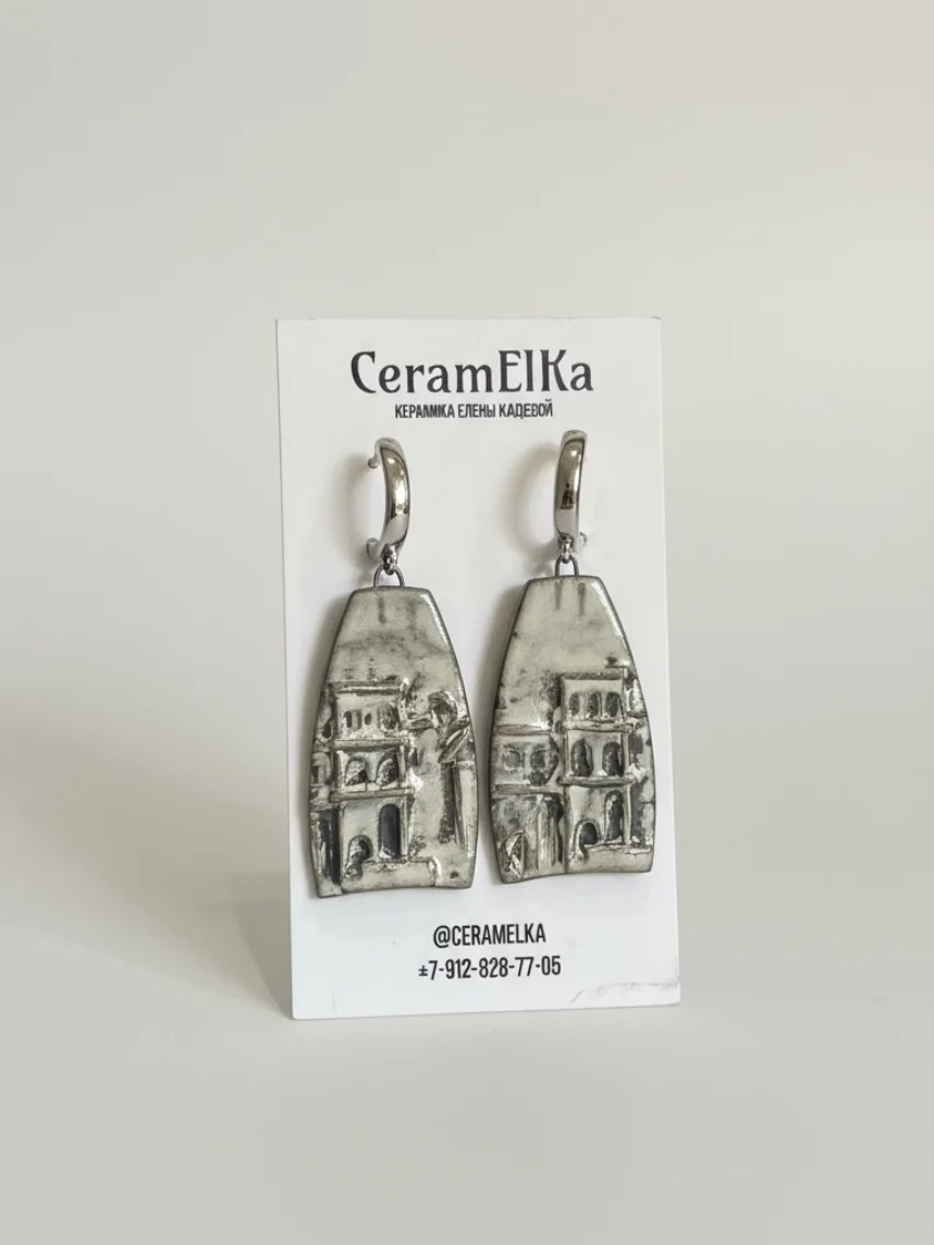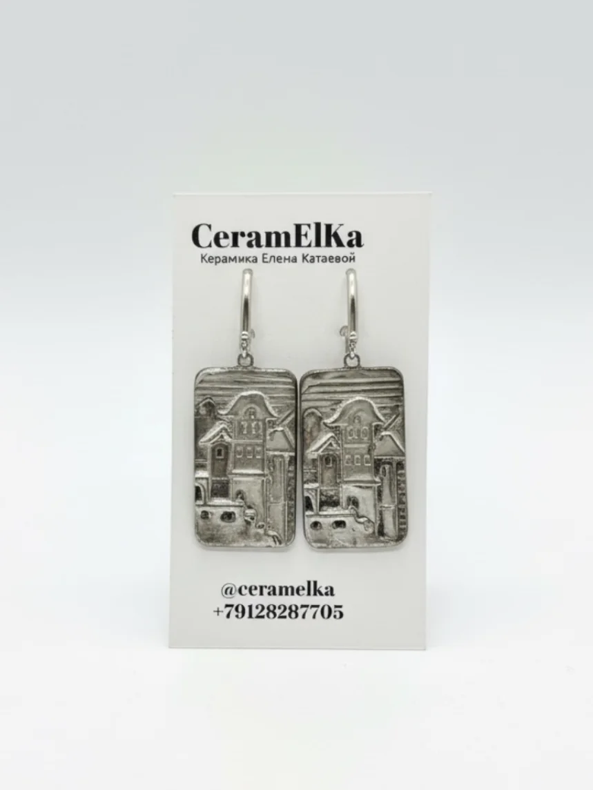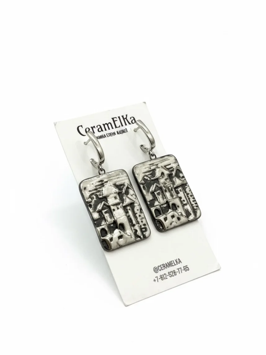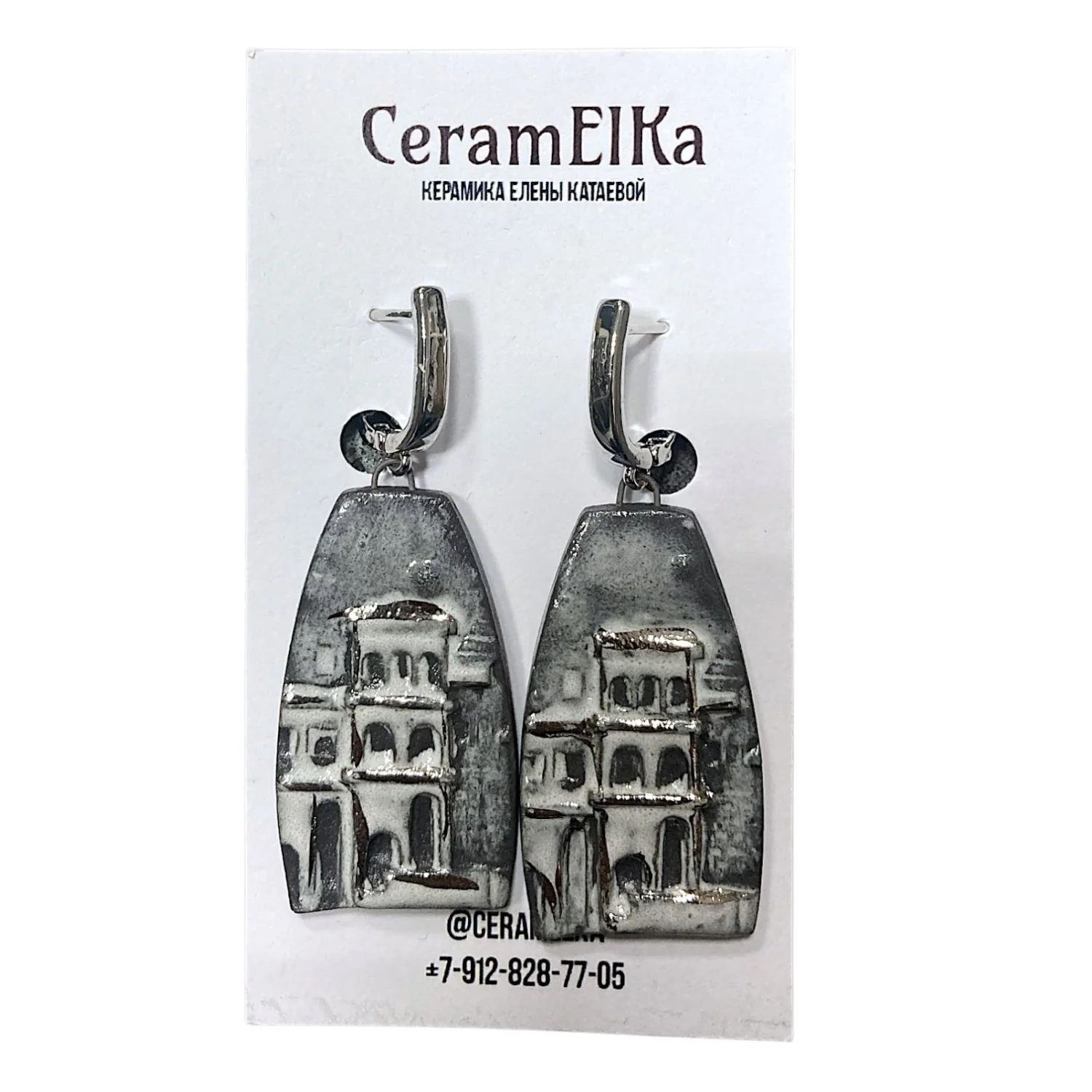Серьги из керамики «Город» - это яркие и оригинальные украшения, выполненные вручную керамисткой Еленой Катаевой из Кирова.