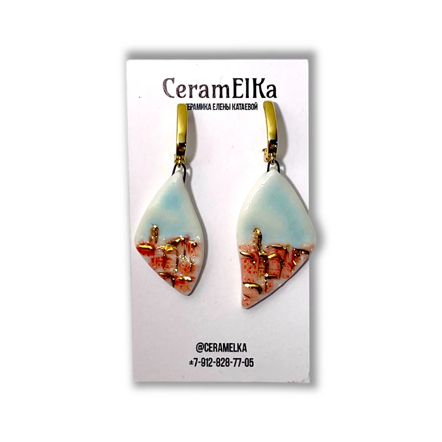 Необычные фарфоровые серьги с изображениями города. Ручная работа от кировской керамистки Елены Катаевой.