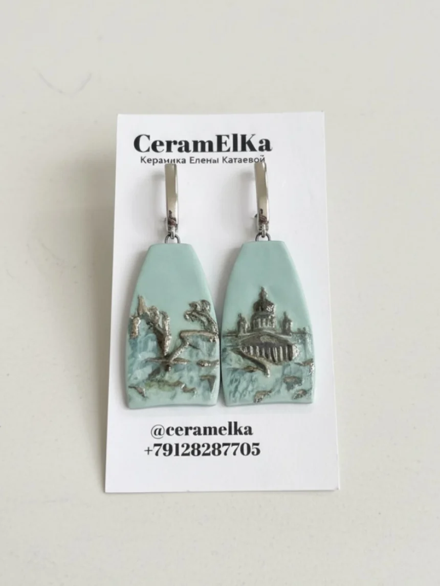 Серьги из керамики «Город» - это яркие и оригинальные украшения, выполненные вручную керамисткой Еленой Катаевой из Кирова.
