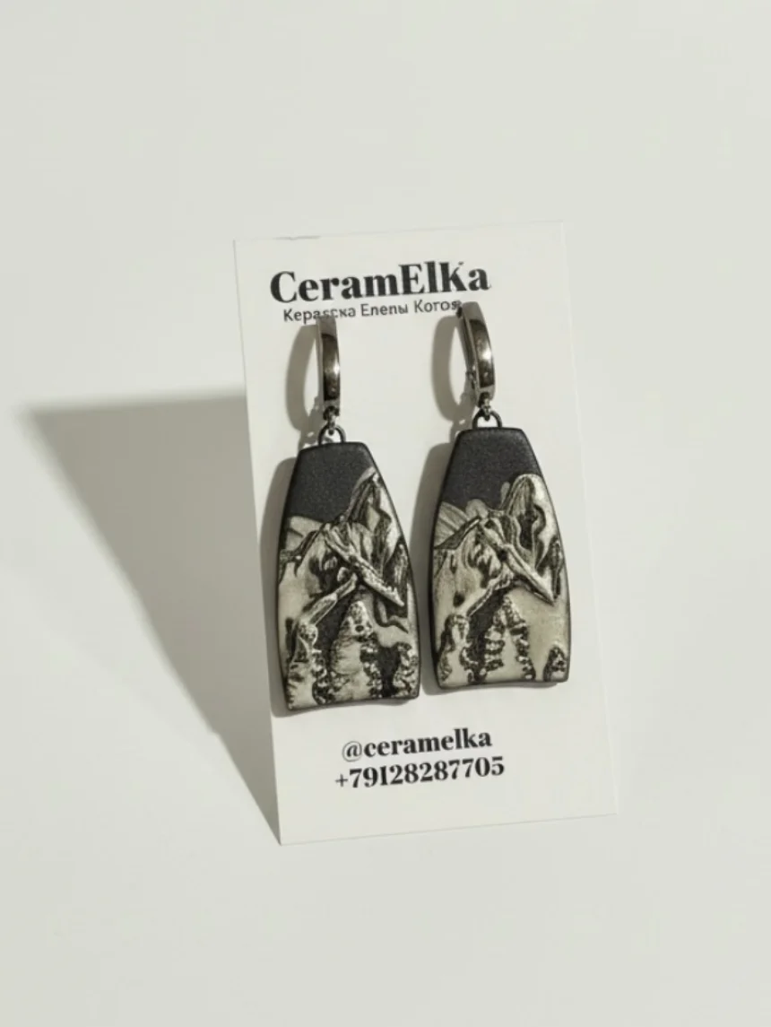 Серьги из керамики «Горы» - это яркие и оригинальные украшения, выполненные вручную керамисткой Еленой Катаевой из Кирова.