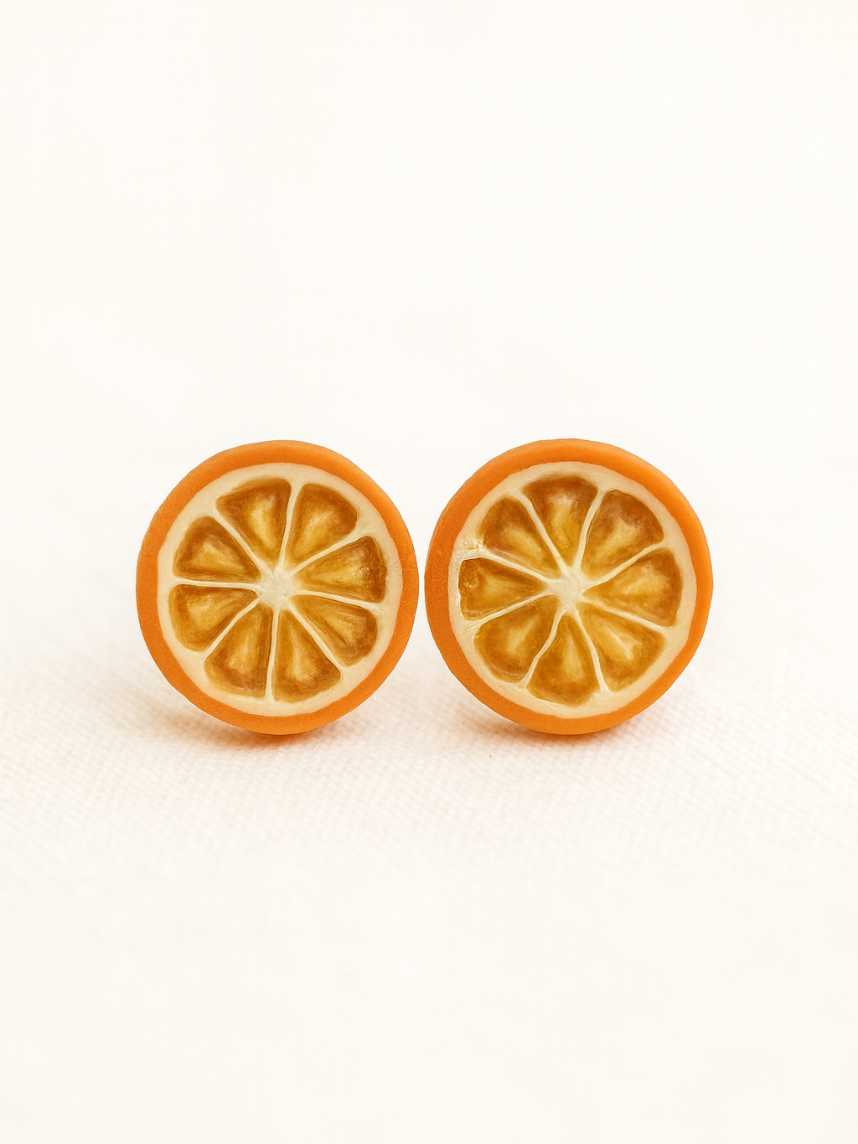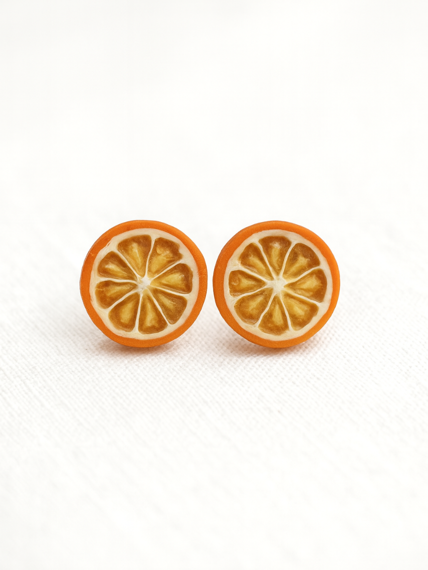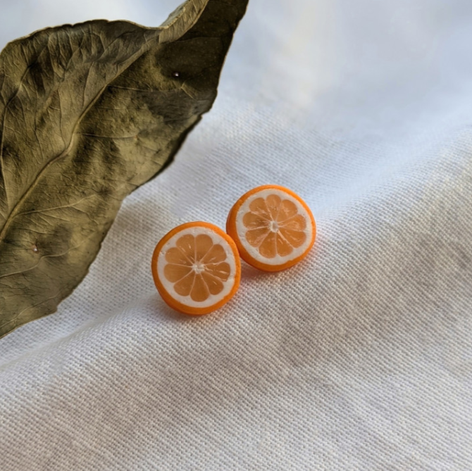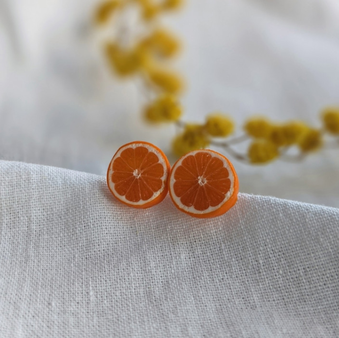 Серьги-гвоздики «Апельсин» созданы из запекаемой полимерной глины вручную талантливым мастером Яной Насоновой.