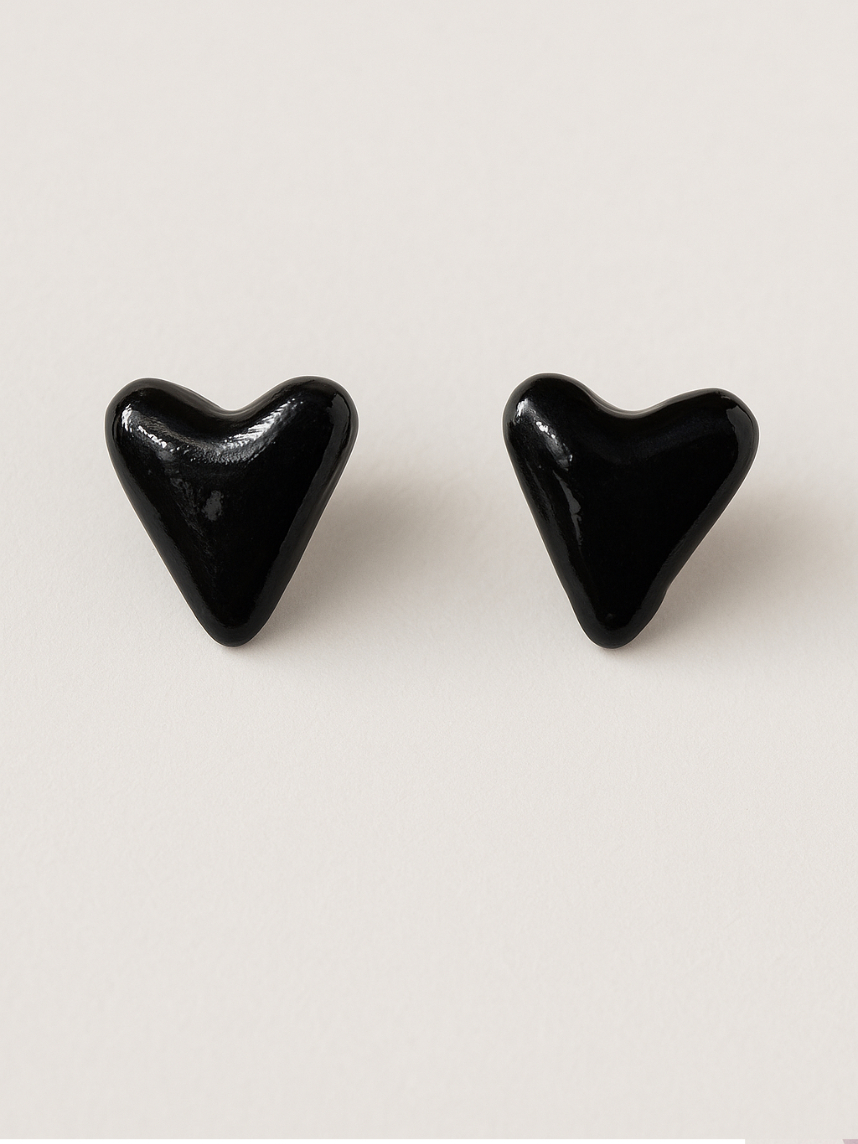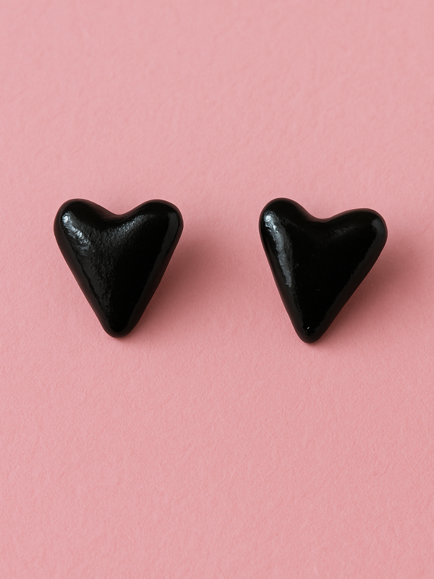Серьги-гвоздики «Чёрные сердечки», полимерная глина