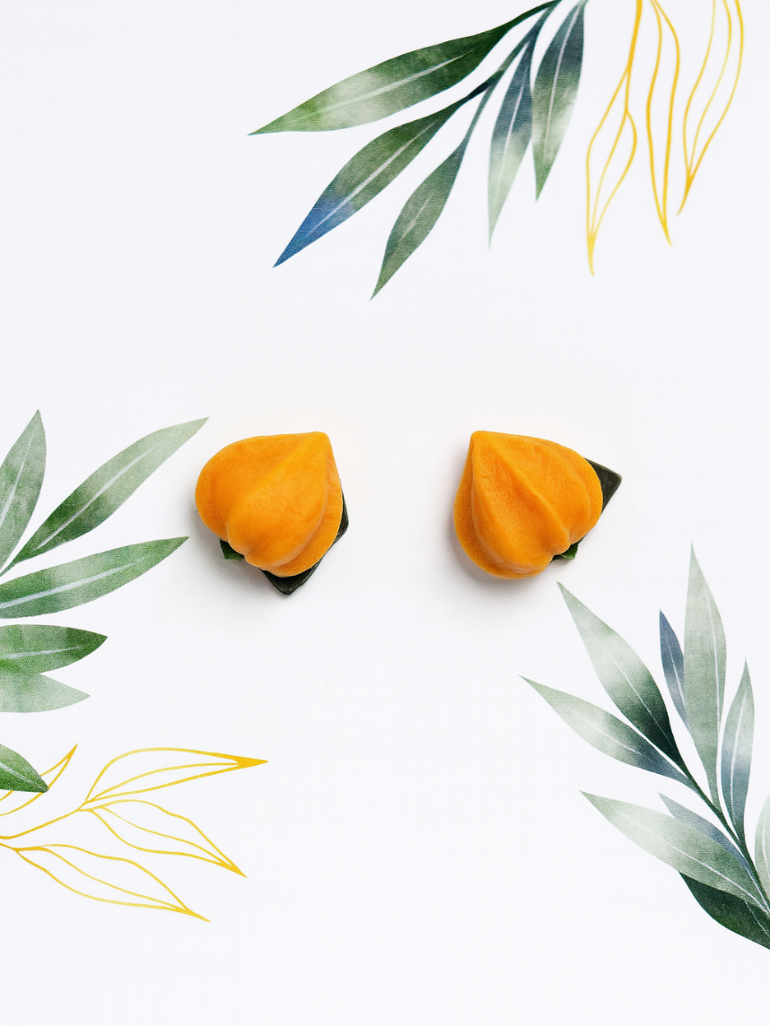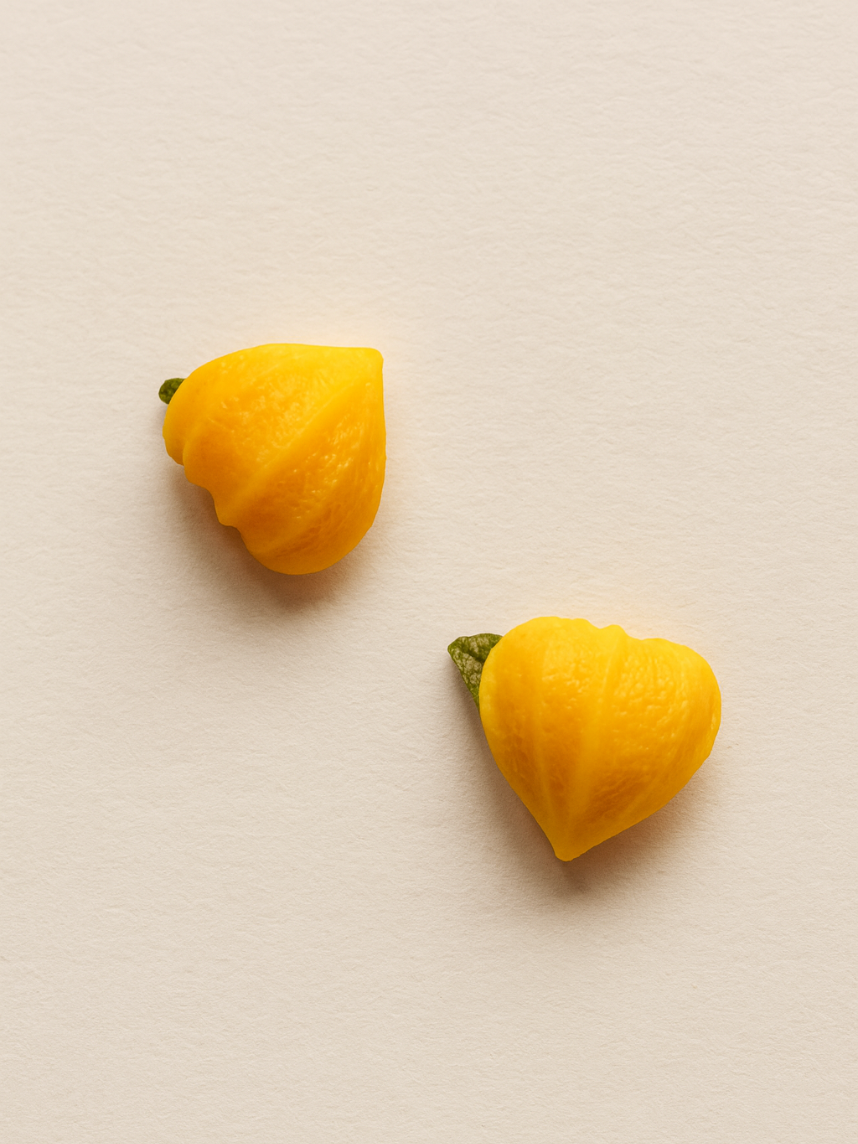 Серьги-гвоздики «Физалис» созданы из запекаемой полимерной глины вручную талантливым мастером Яной Насоновой.