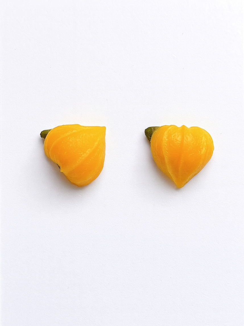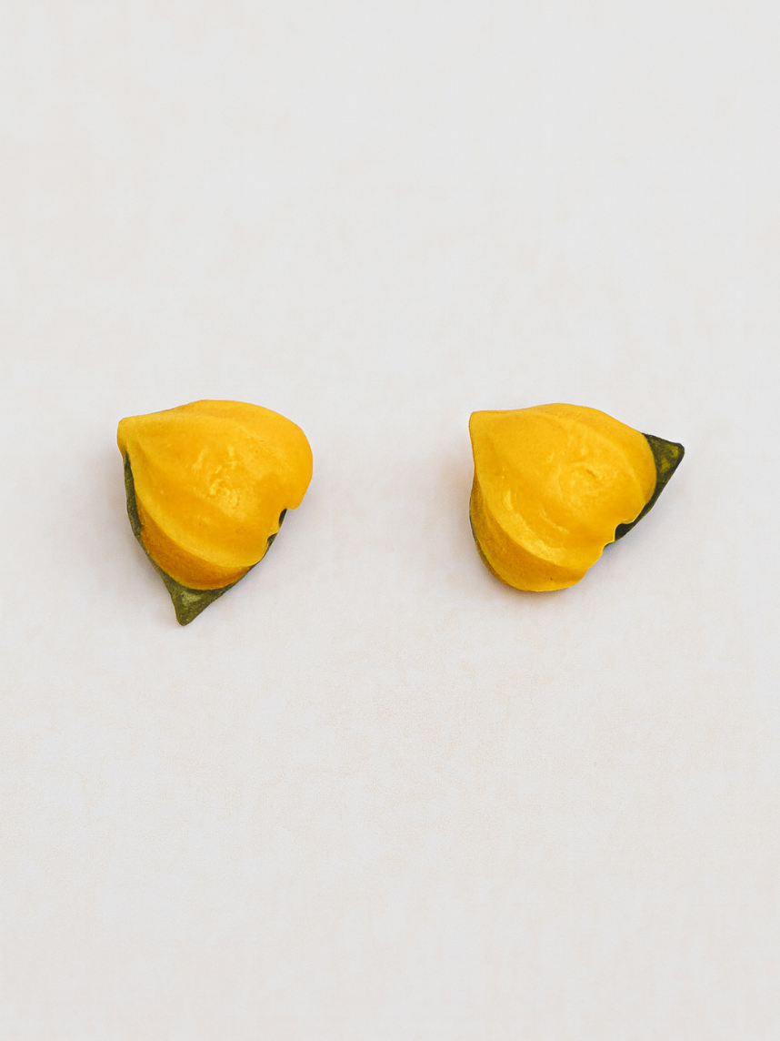 Серьги-гвоздики «Физалис» созданы из запекаемой полимерной глины вручную талантливым мастером Яной Насоновой.