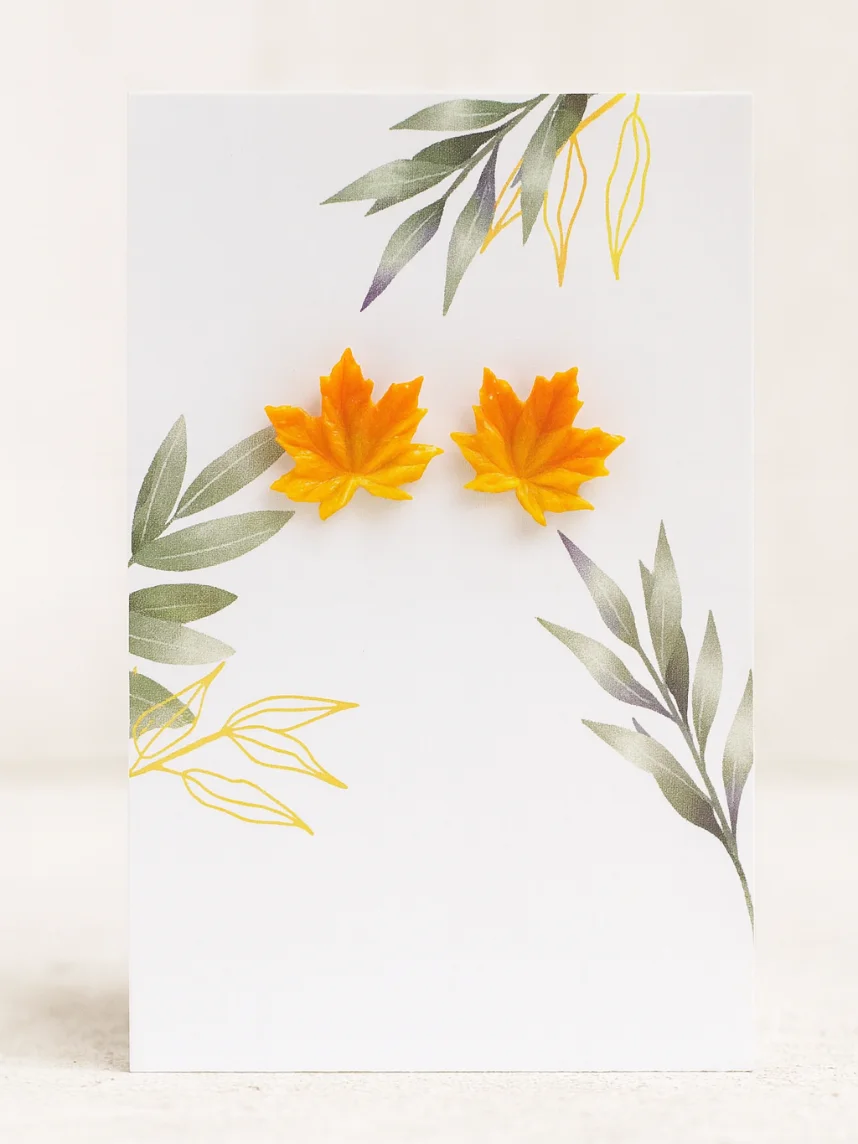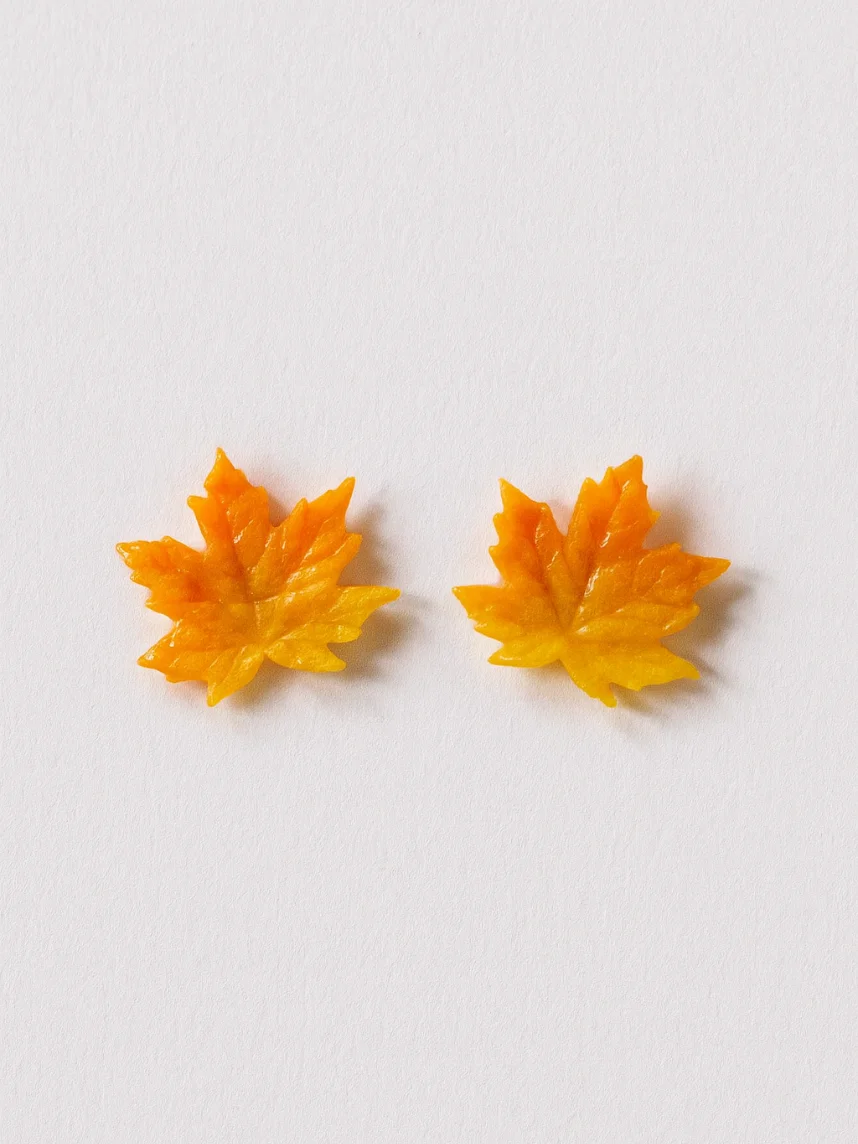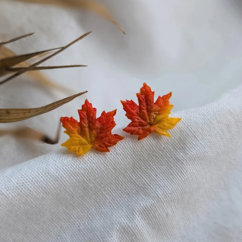 Серьги-гвоздики «Кленовые листочки» созданы из запекаемой полимерной глины вручную талантливым мастером Яной Насоновой.