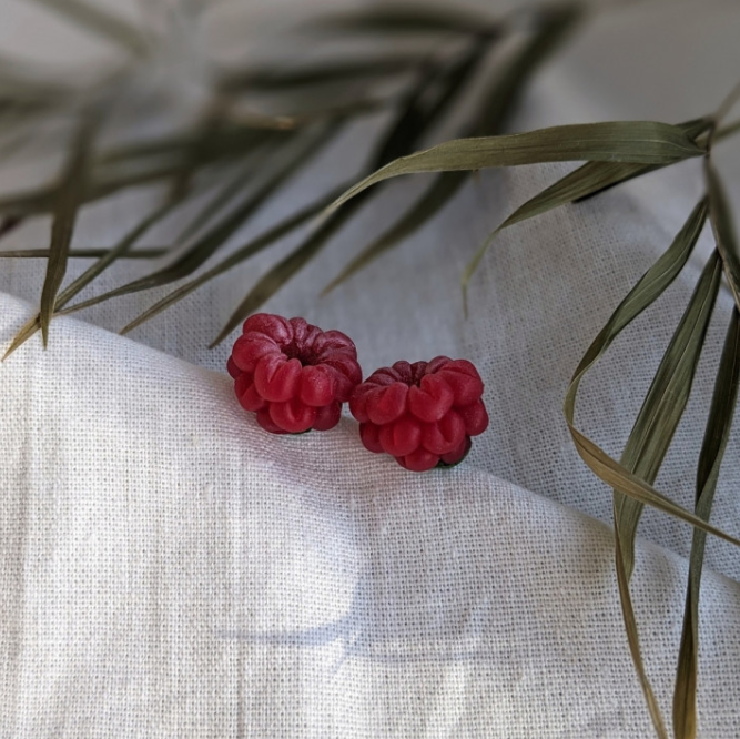 Серьги-гвоздики «Малина» созданы из запекаемой полимерной глины вручную талантливым мастером Яной Насоновой.