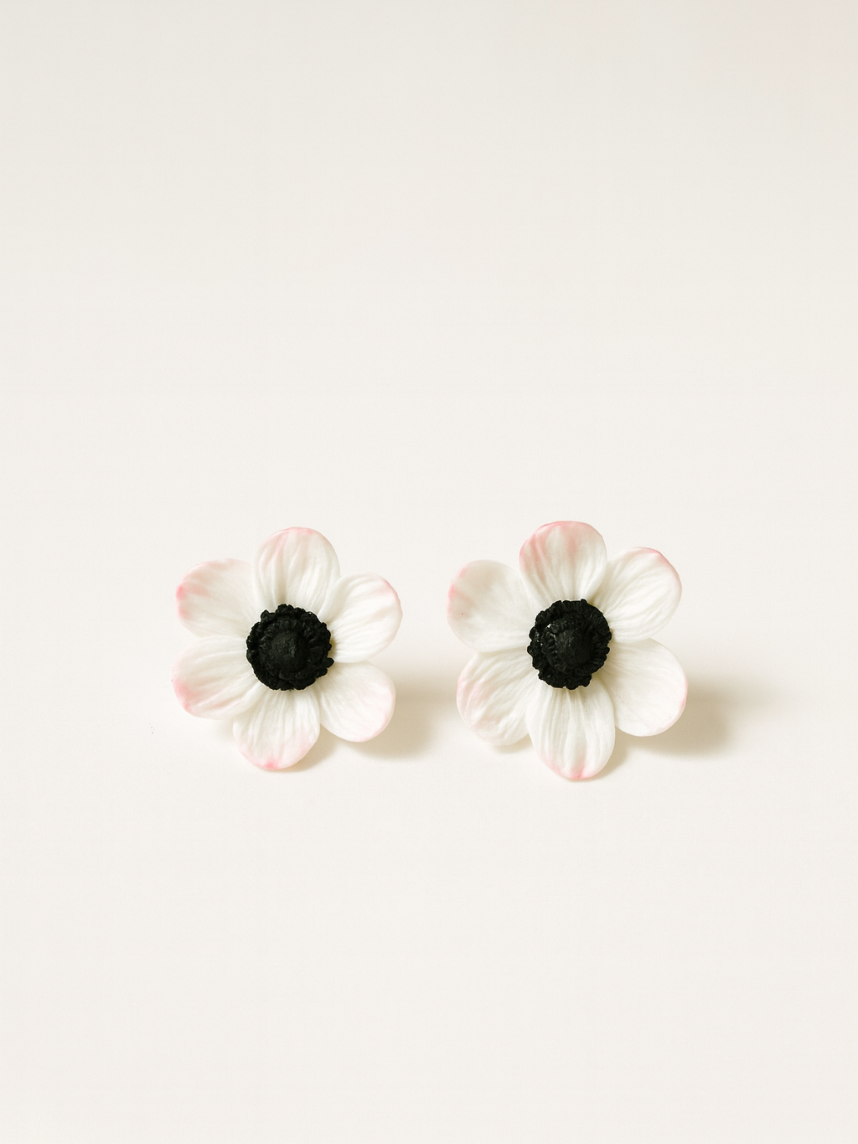 Серьги-гвоздики «Анемоны», бело-розовые, полимерная глина