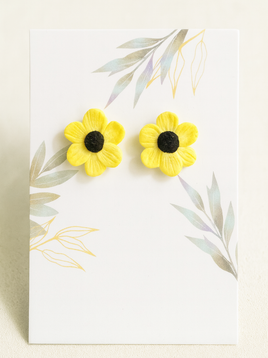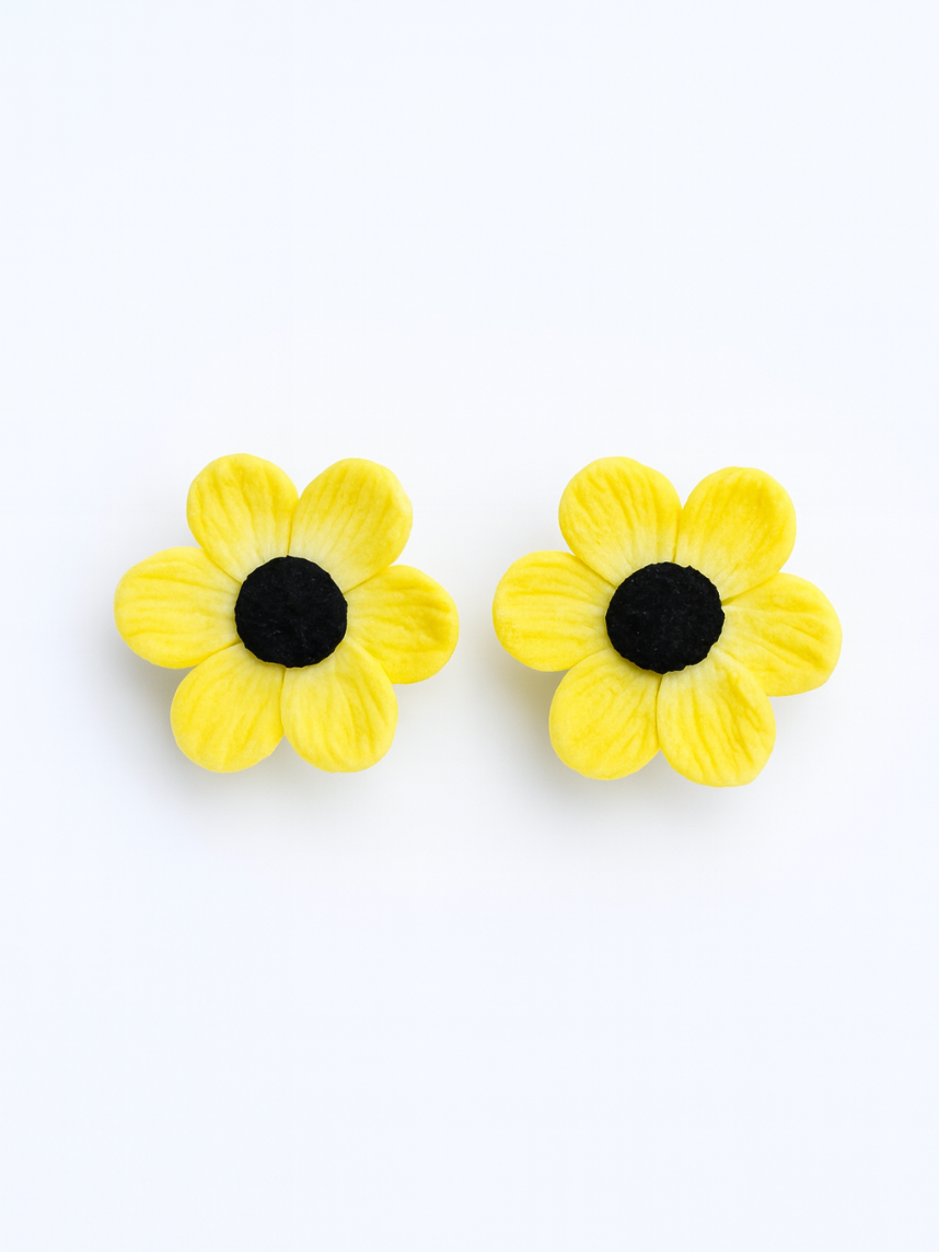 Серьги-гвоздики «Анемоны», полимерная глина, жёлтые