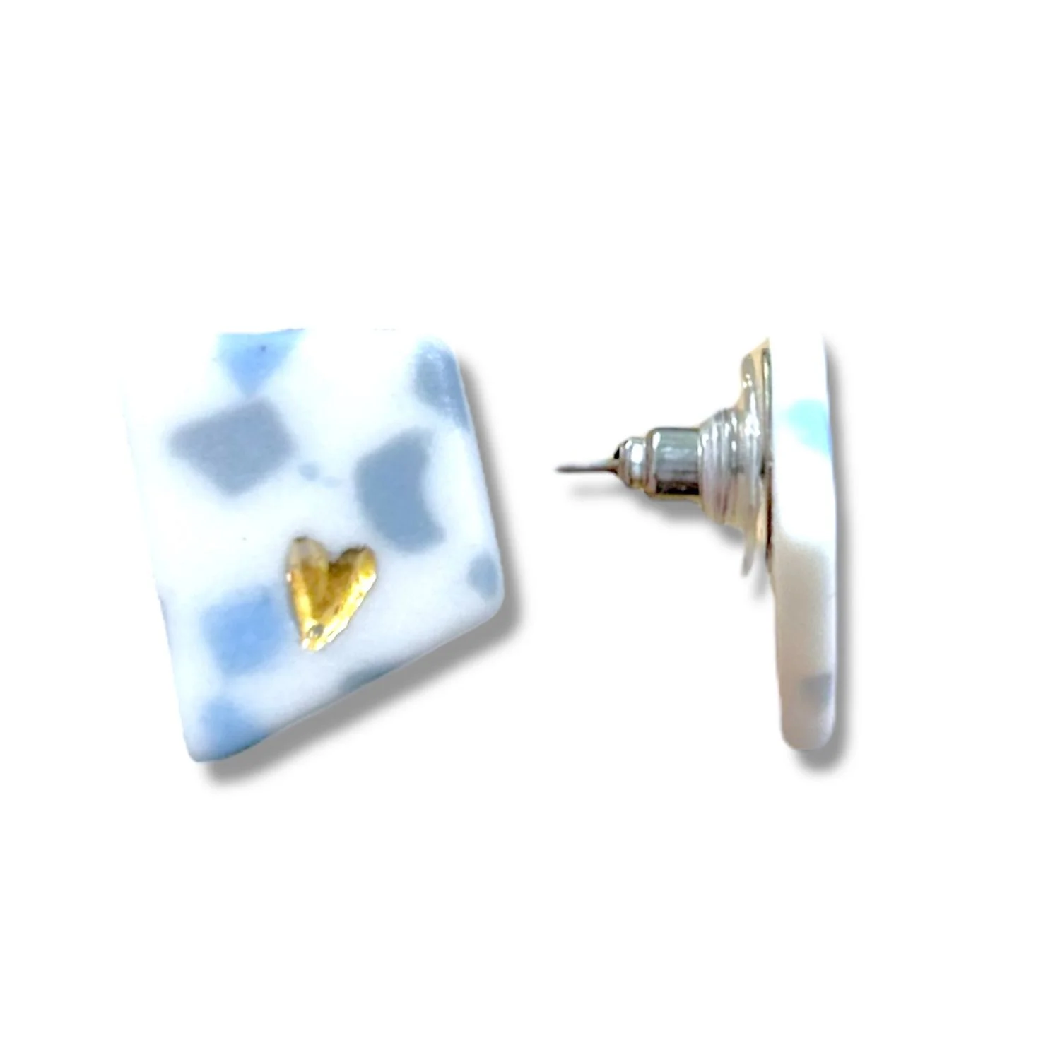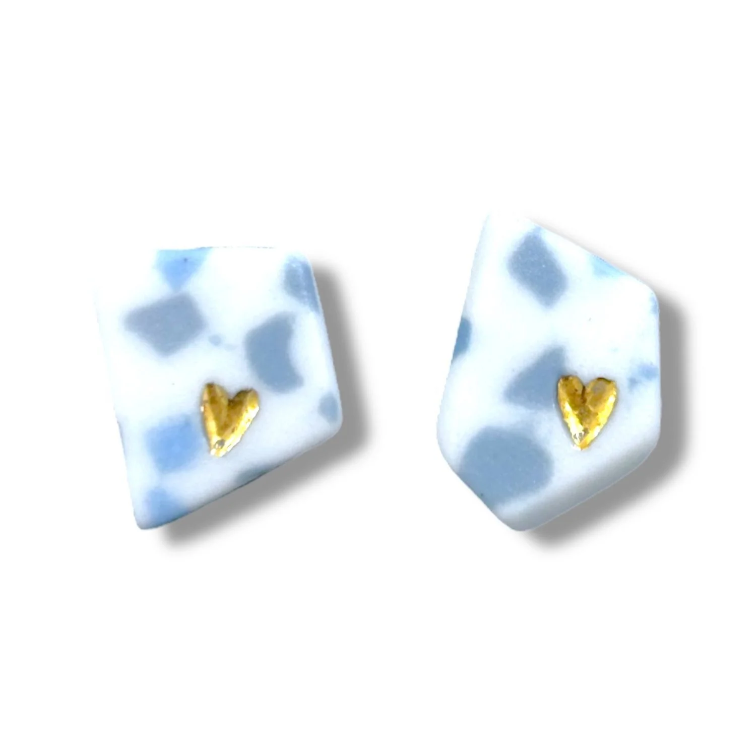 Элегантные серьги-гвоздики из фарфора с сердечками, покрытым позолотой. Ручная работа от бренда North Garden.