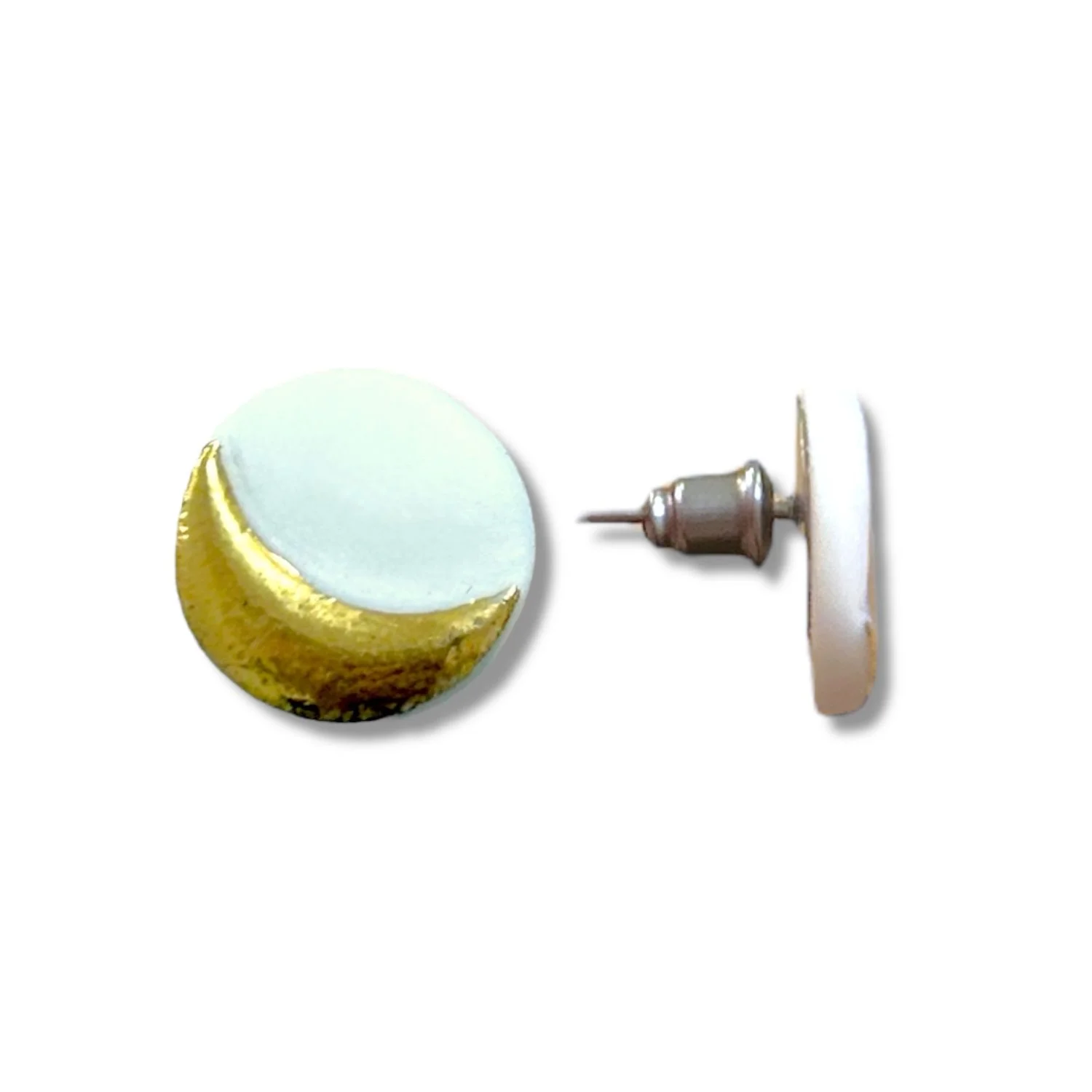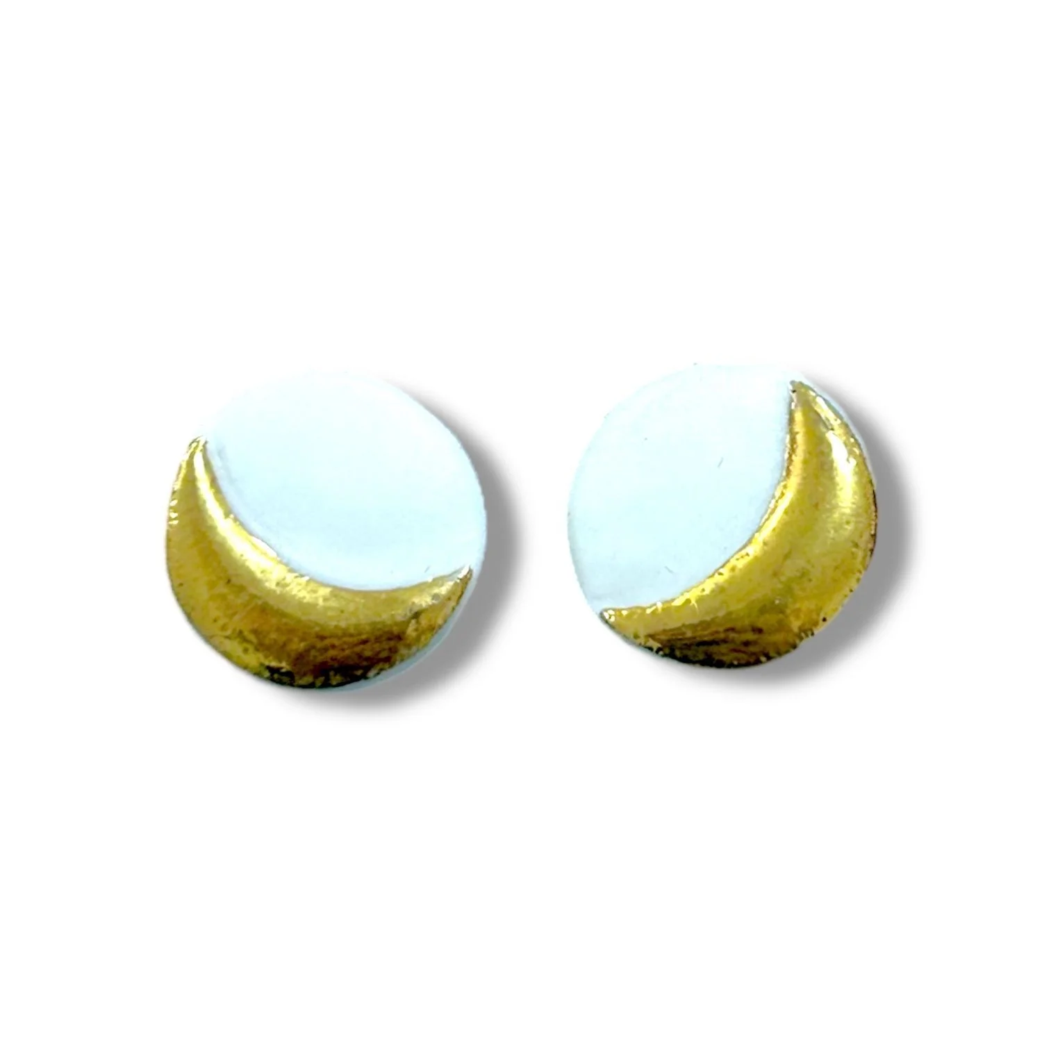Элегантные серьги-гвоздики из фарфора в форме месяца. Ручная работа от бренда North Garden.