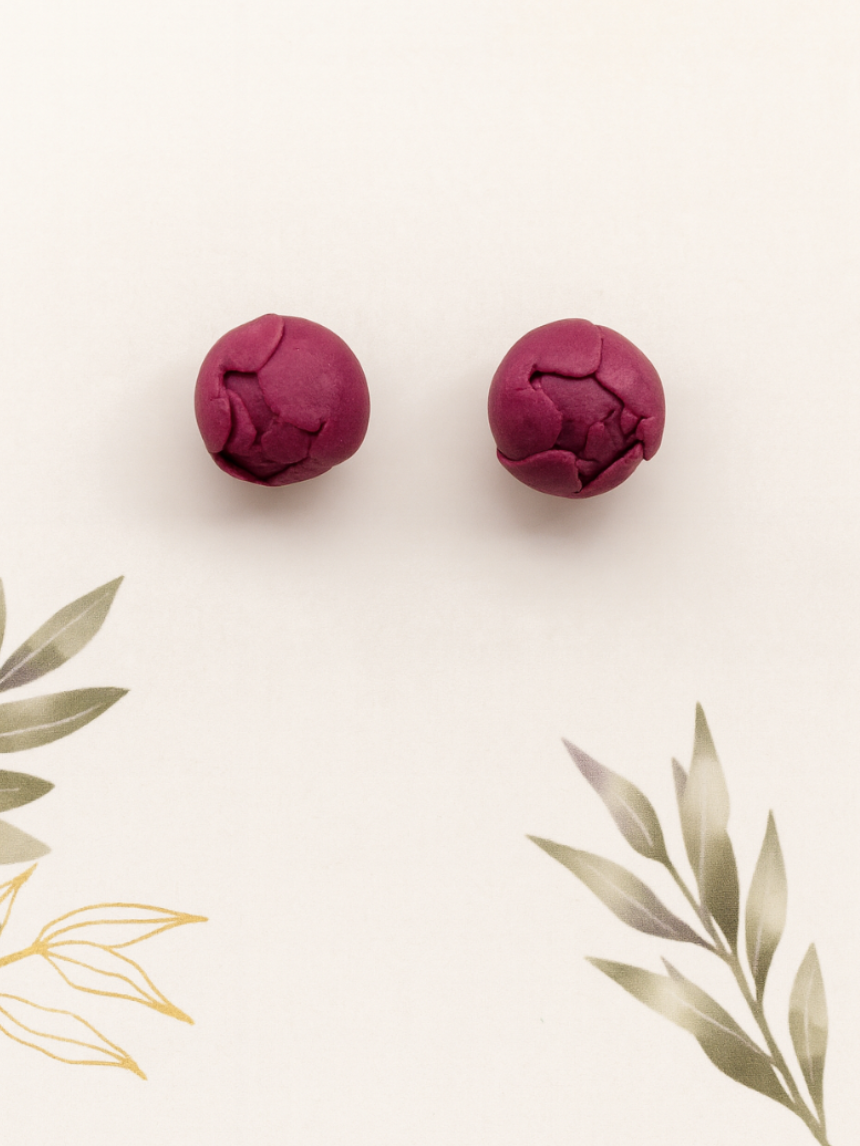 Серьги-гвоздики «Пион бордовый» созданы из запекаемой полимерной глины вручную талантливым мастером Яной Насоновой.