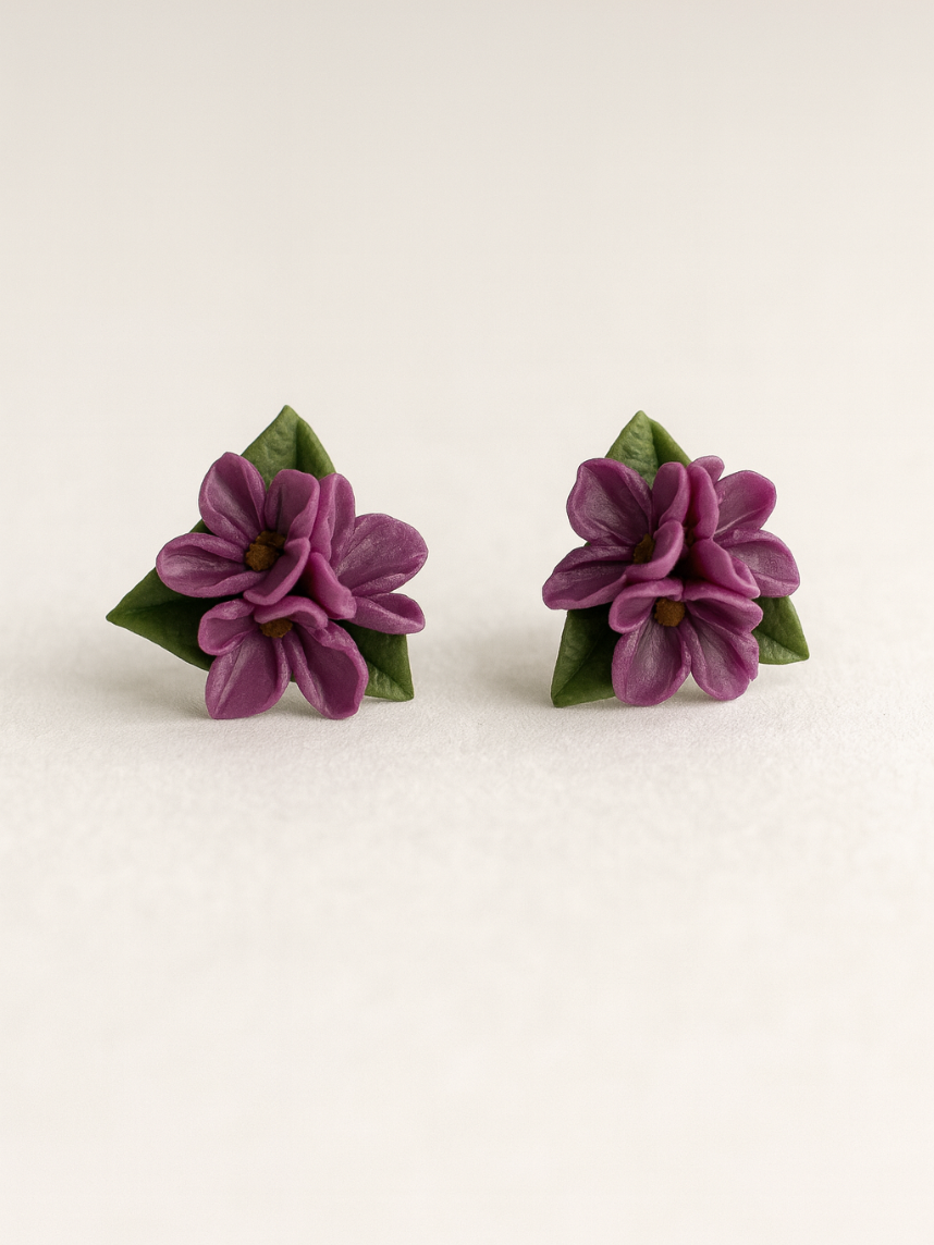 Серьги-гвоздики «Сирень» созданы из запекаемой полимерной глины вручную талантливым мастером Яной Насоновой.