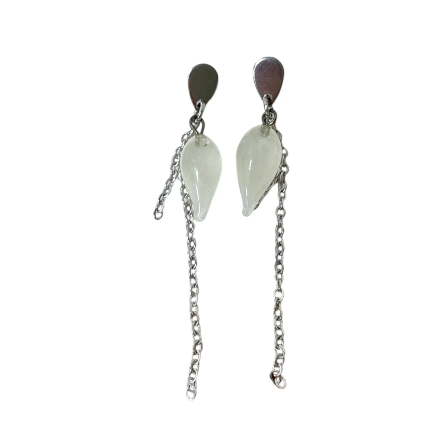 Серьги-гвоздики с цепочкой прозрачные листочки ручной работы от бренда Kerko glass.