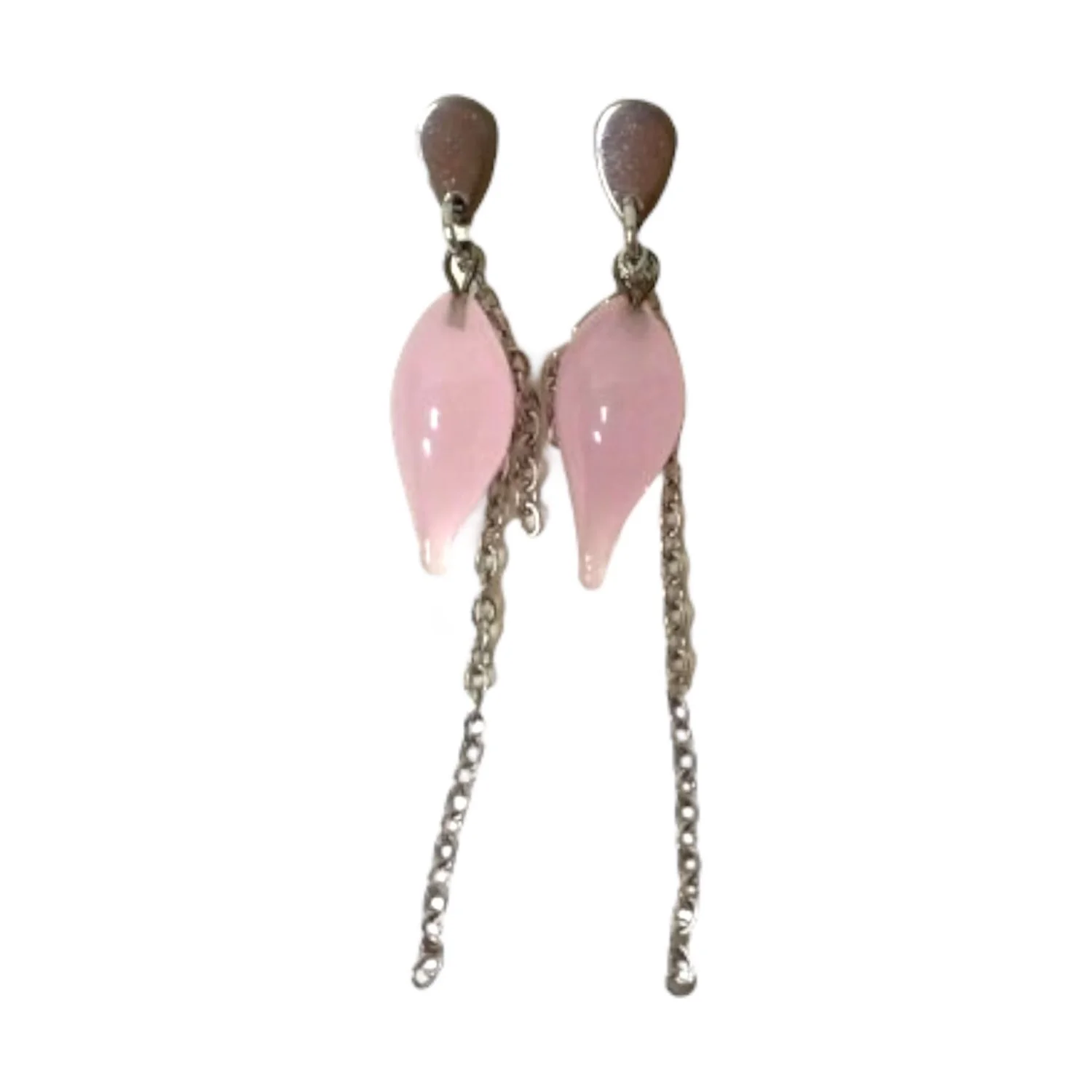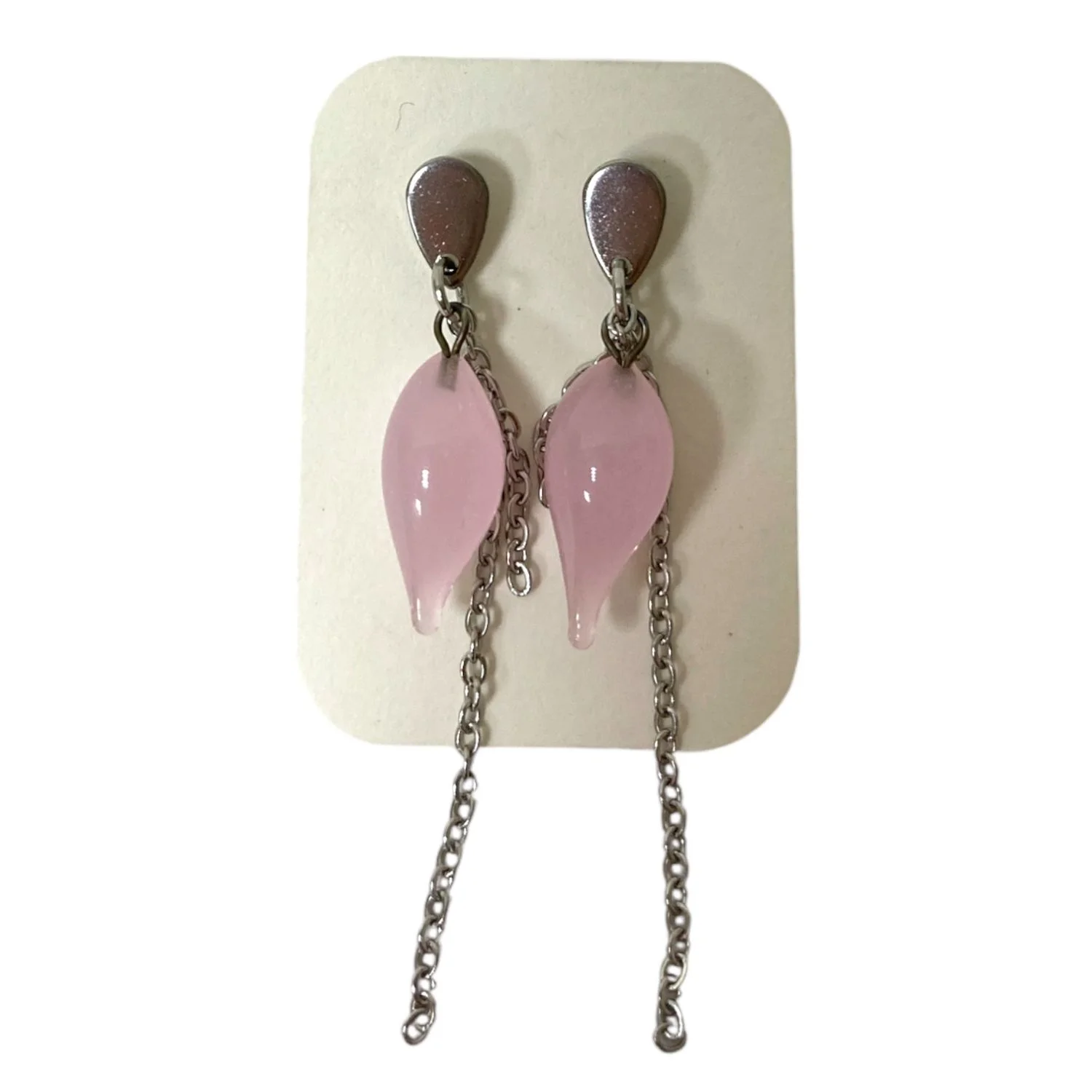 Серьги-гвоздики с цепочкой розовые листочки ручной работы от бренда Kerko glass.