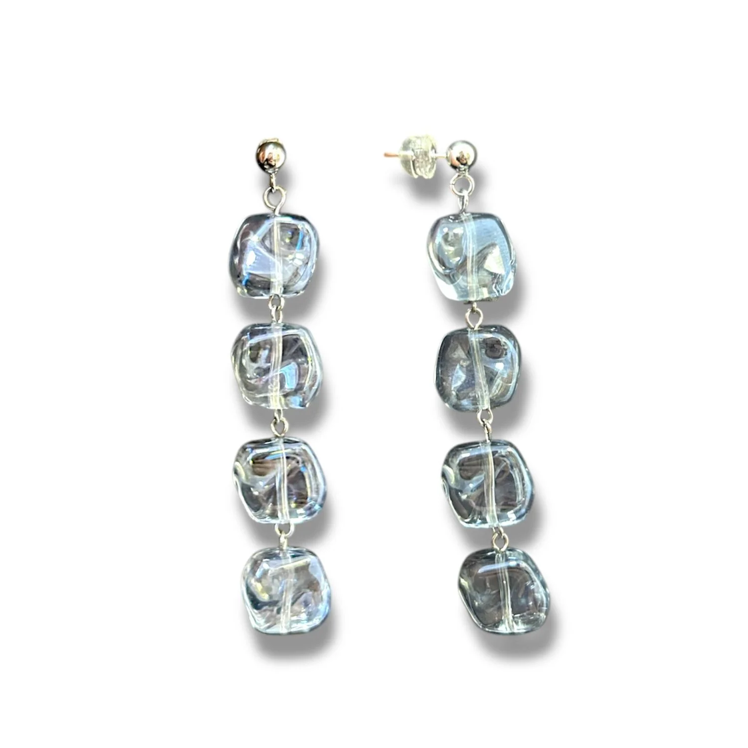 Серьги «Ice» прозрачные с переливами, выполненный из ювелирного сплава и художественного стекла. Блестят на солнце и похожи на замерзшие капли росы.