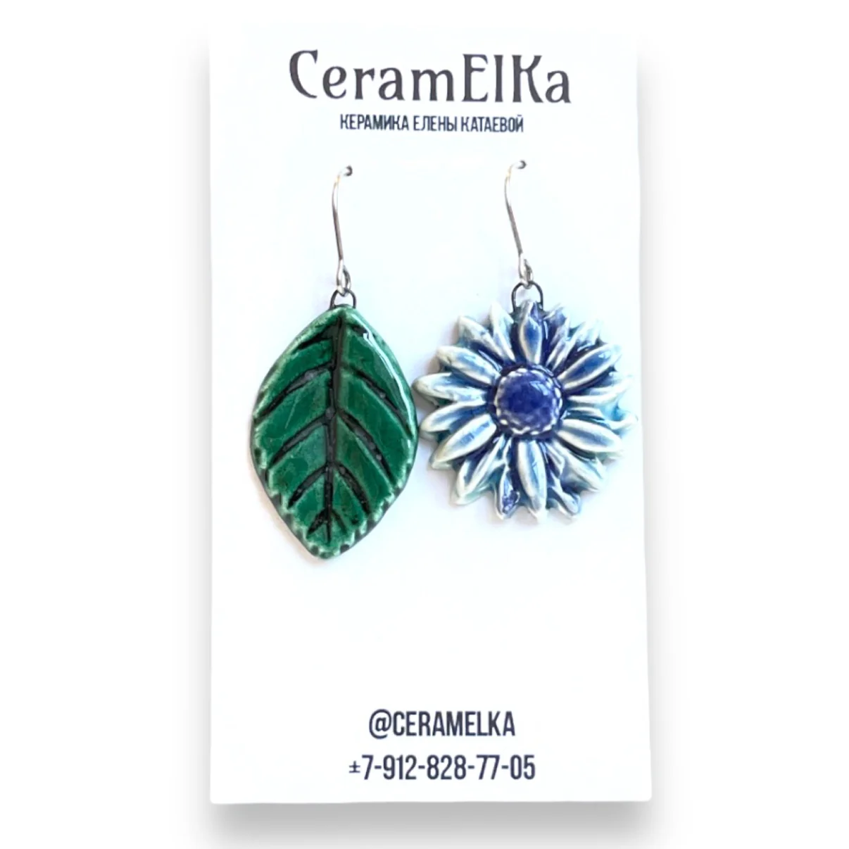 Серьги КерамЕлКа «Лепесток и цветок», керамика