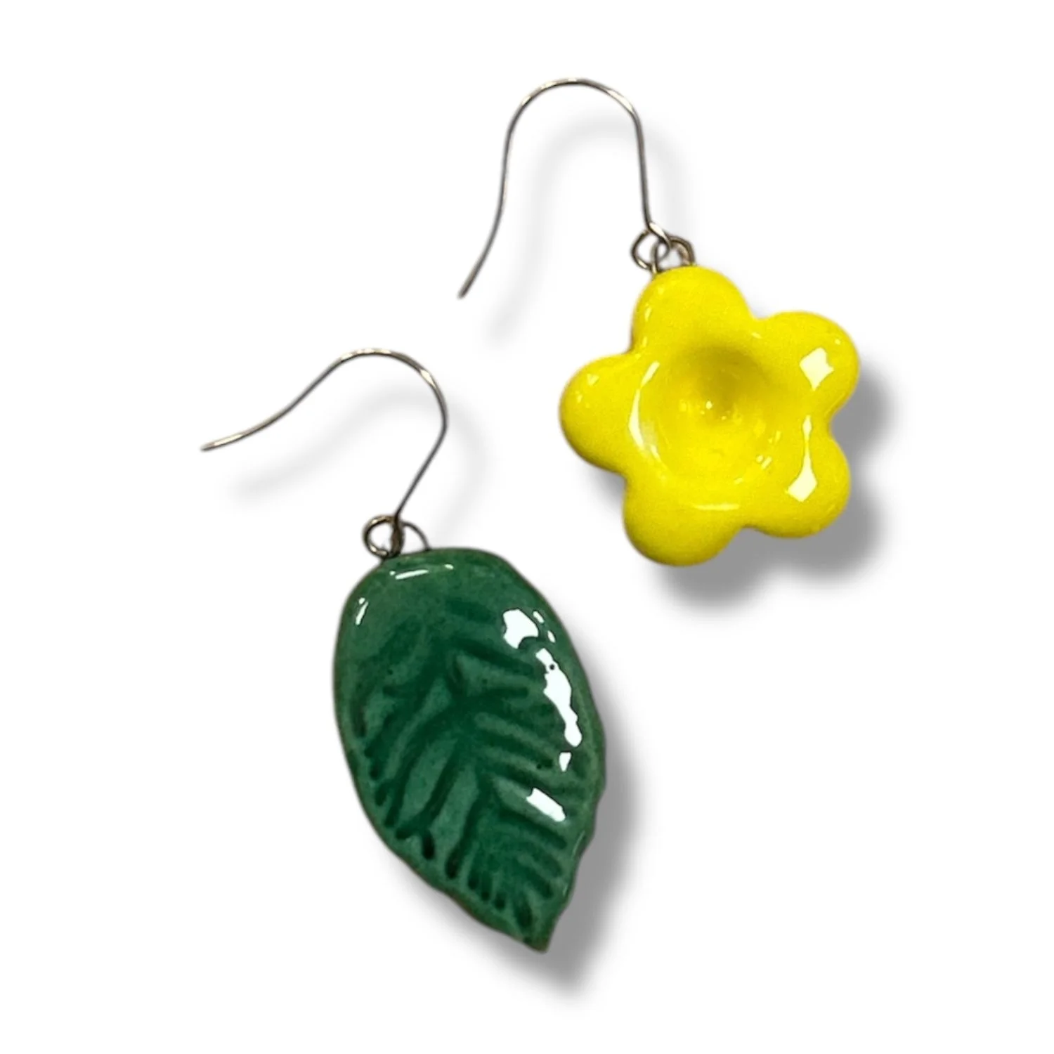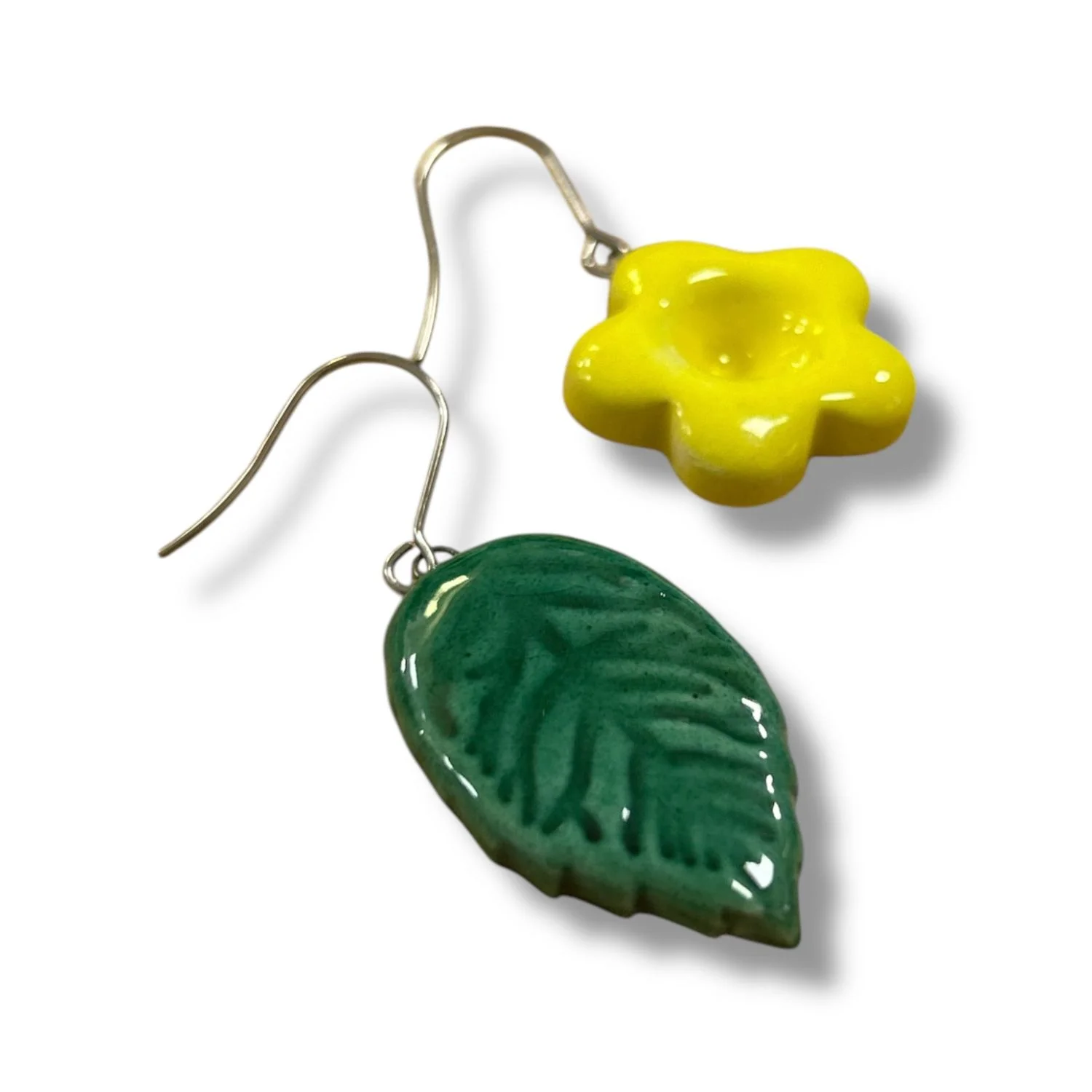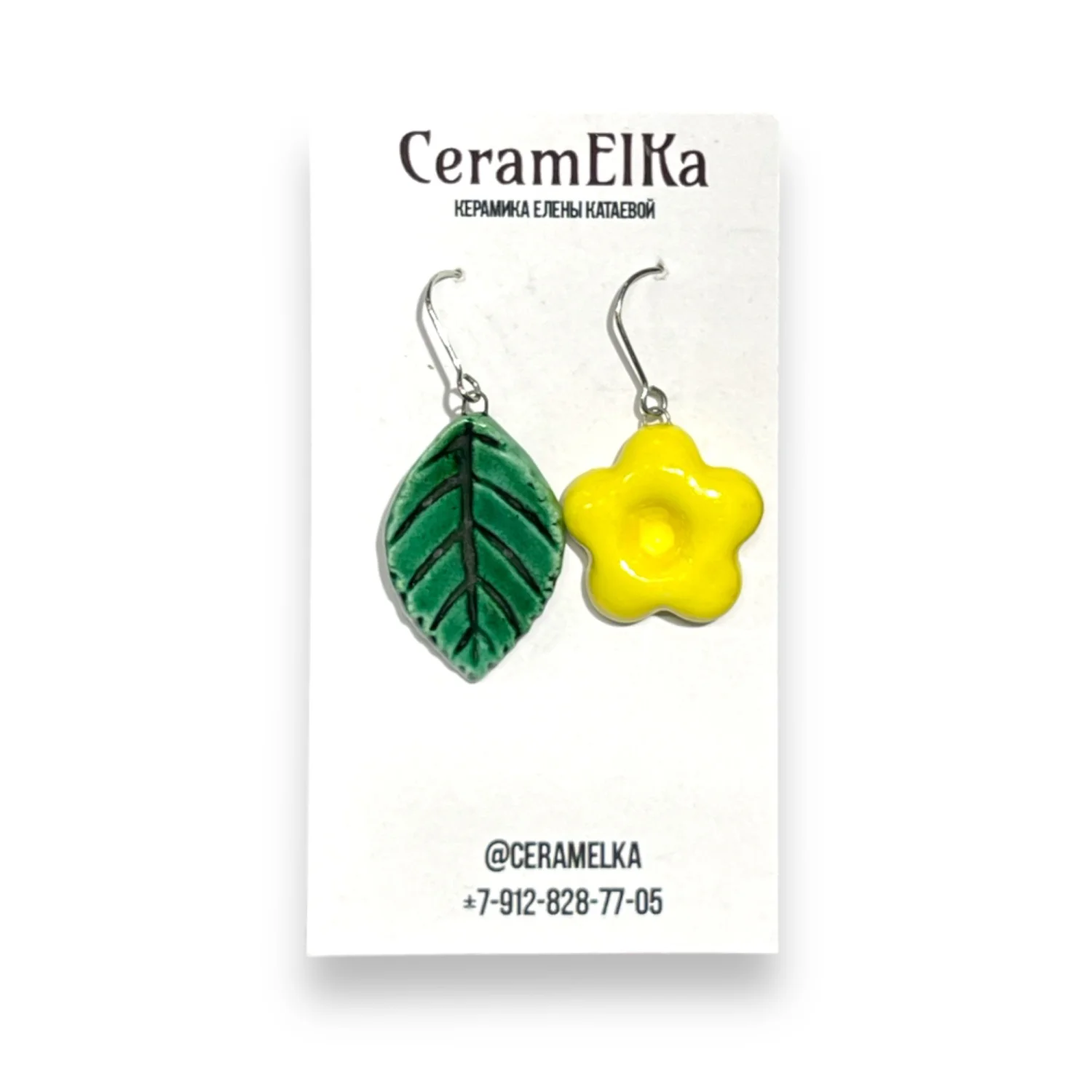 Серьги КерамЕлКа «Лепесток и жёлтый цветок», керамика
