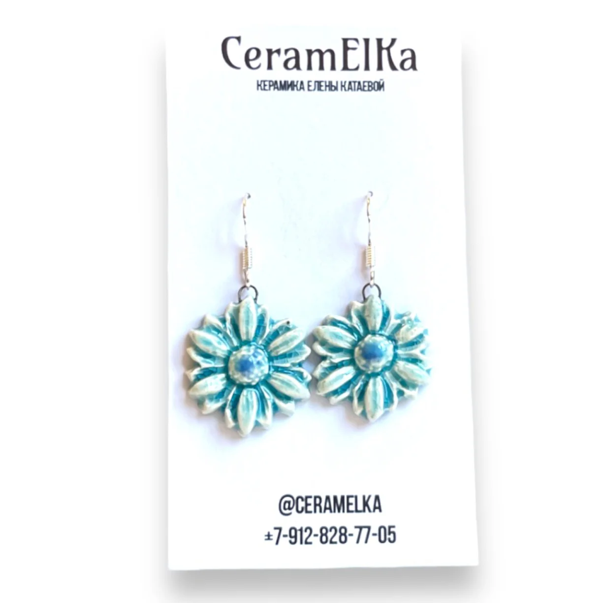 Серьги КерамЕлКа «Ромашки», голубые, керамика