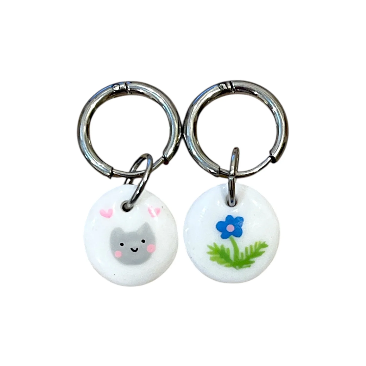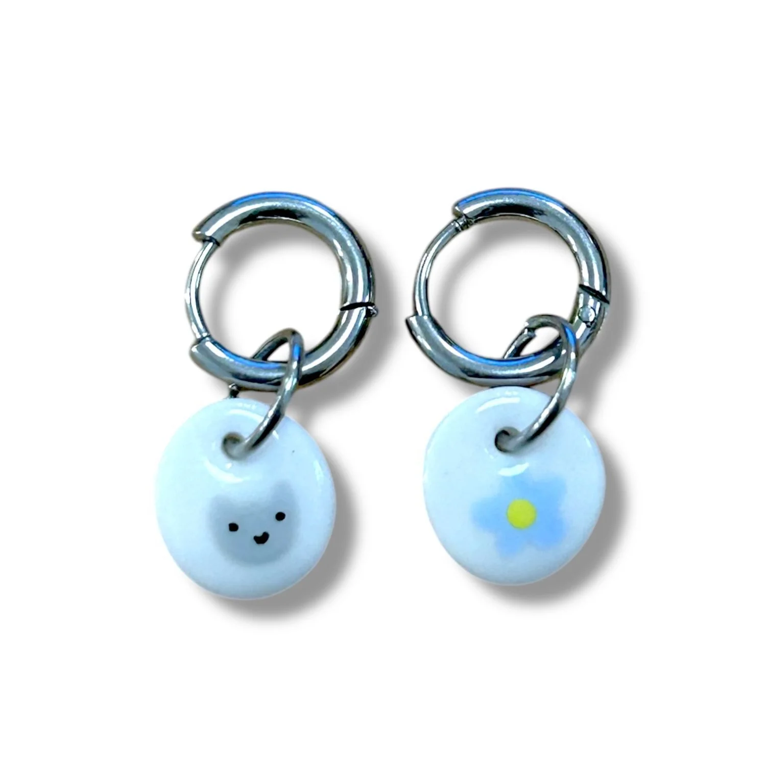 Серьги-конго Радость Рядом «Голубой цветочек и мордочка», полимерная глина, белые