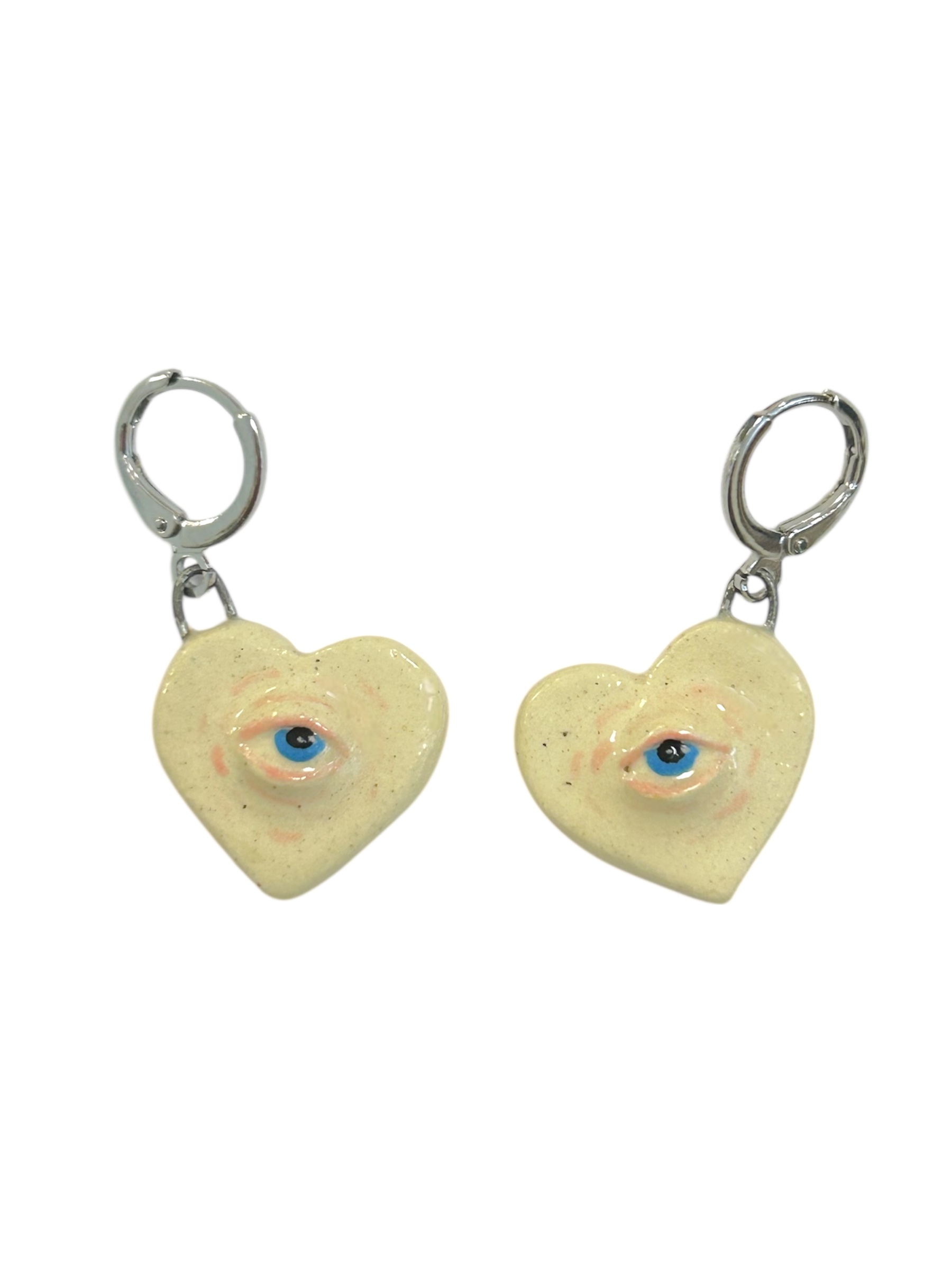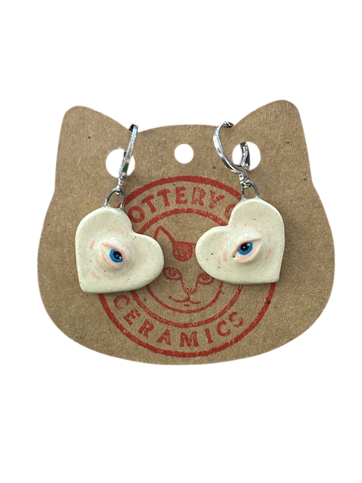 Серьги-конго «Глаза-сердечки» выполнены вручную из керамики.