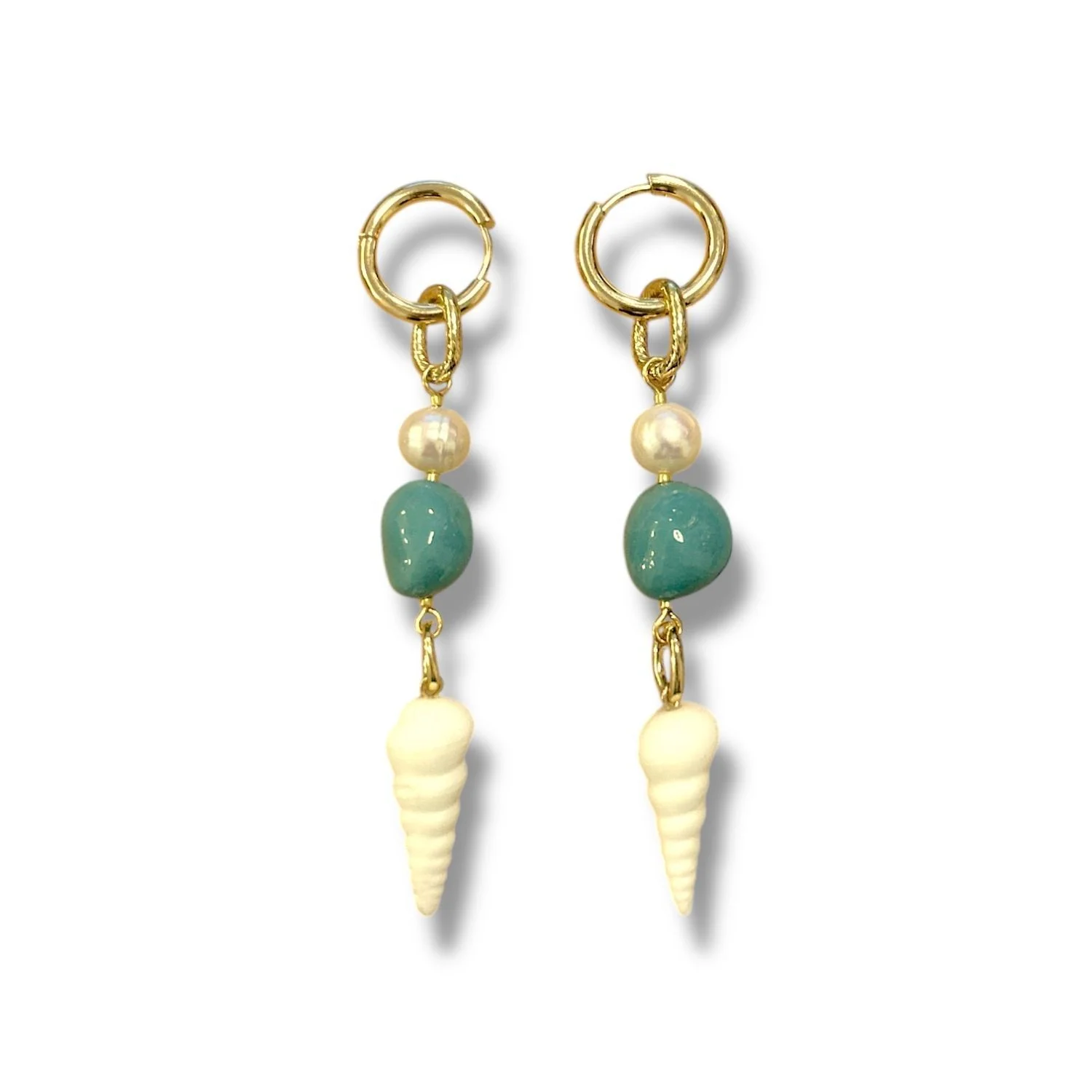 Элегантные серьги-конго с подвесками из фарфора в форме ракушек. Ручная работа от бренда North Garden.