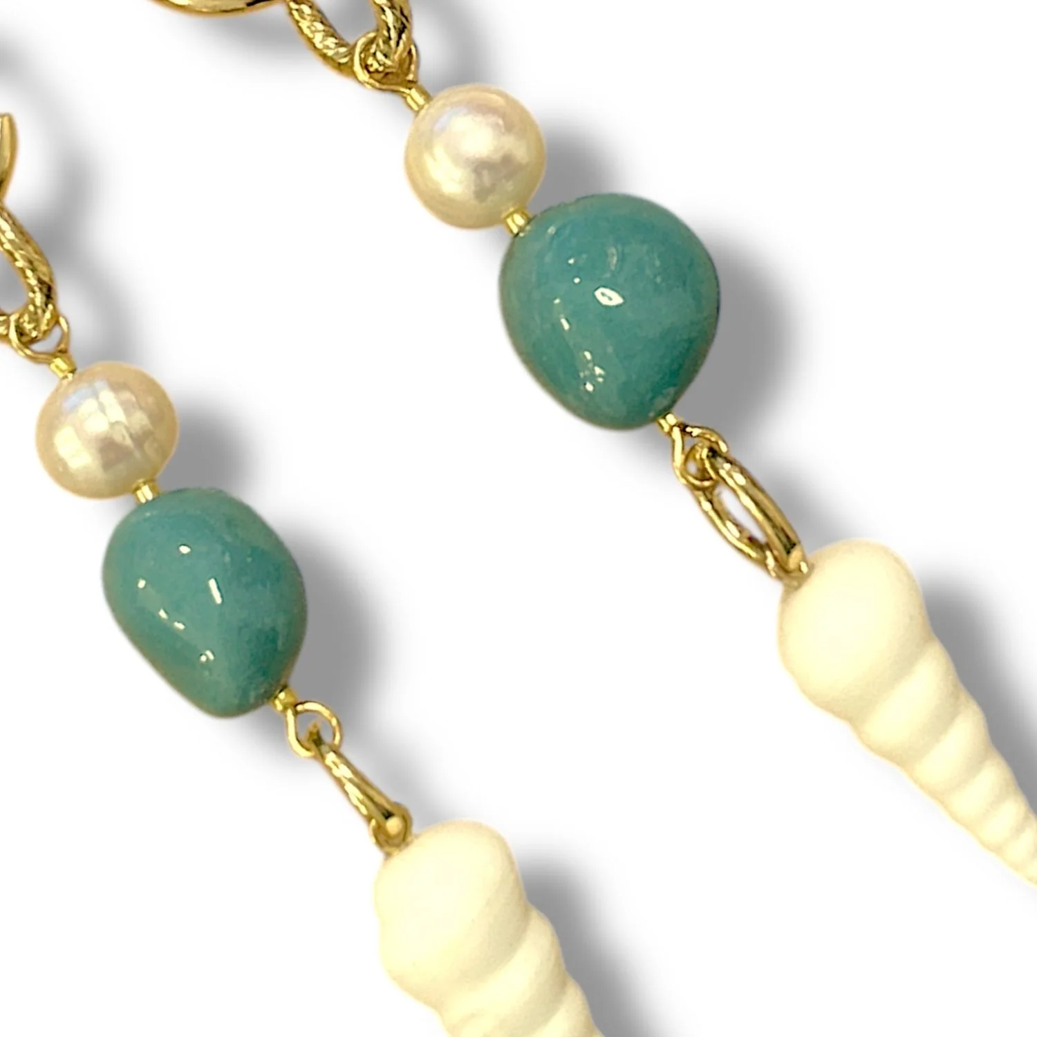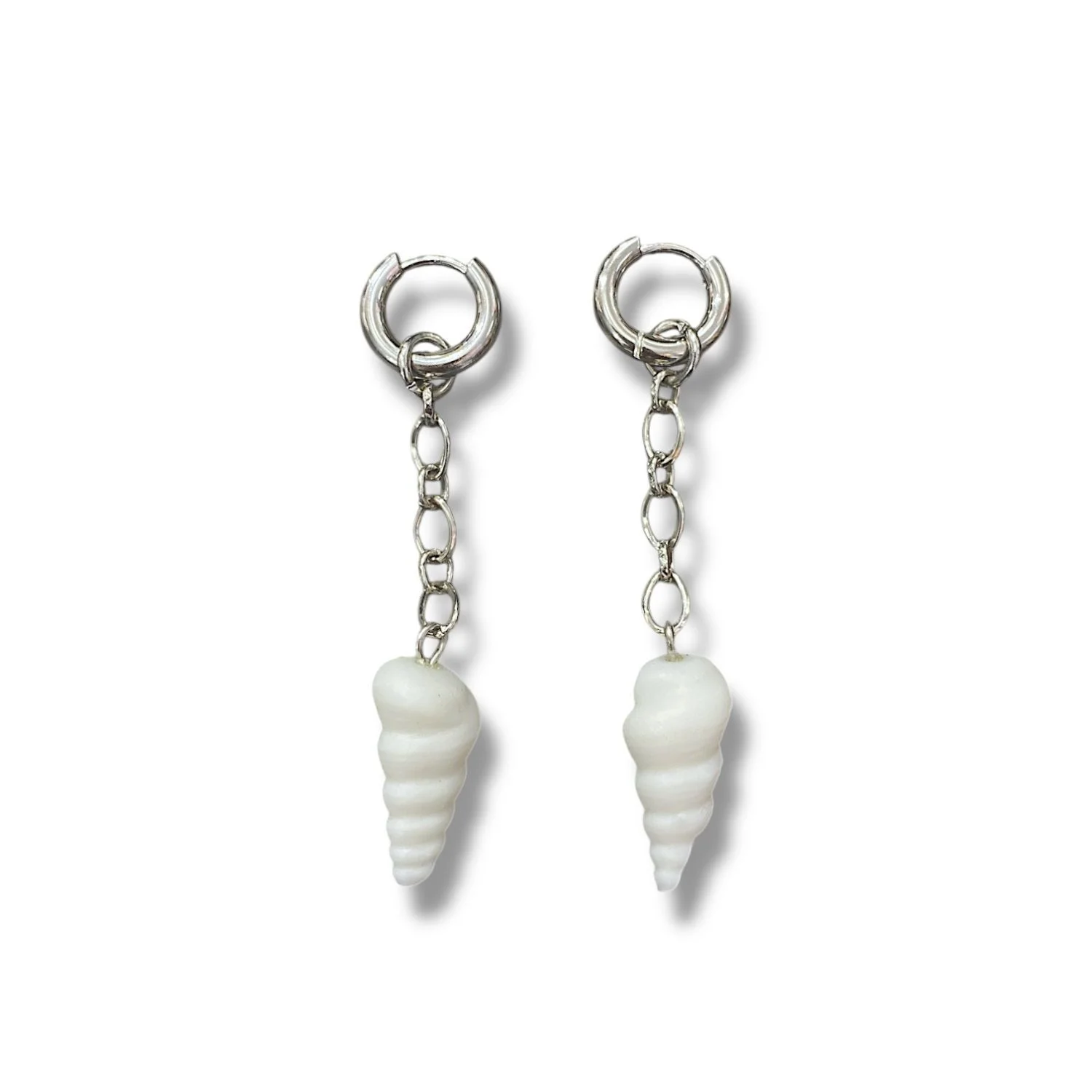 Серьги-конго на цепочке ручной работы Ракушки, фарфор