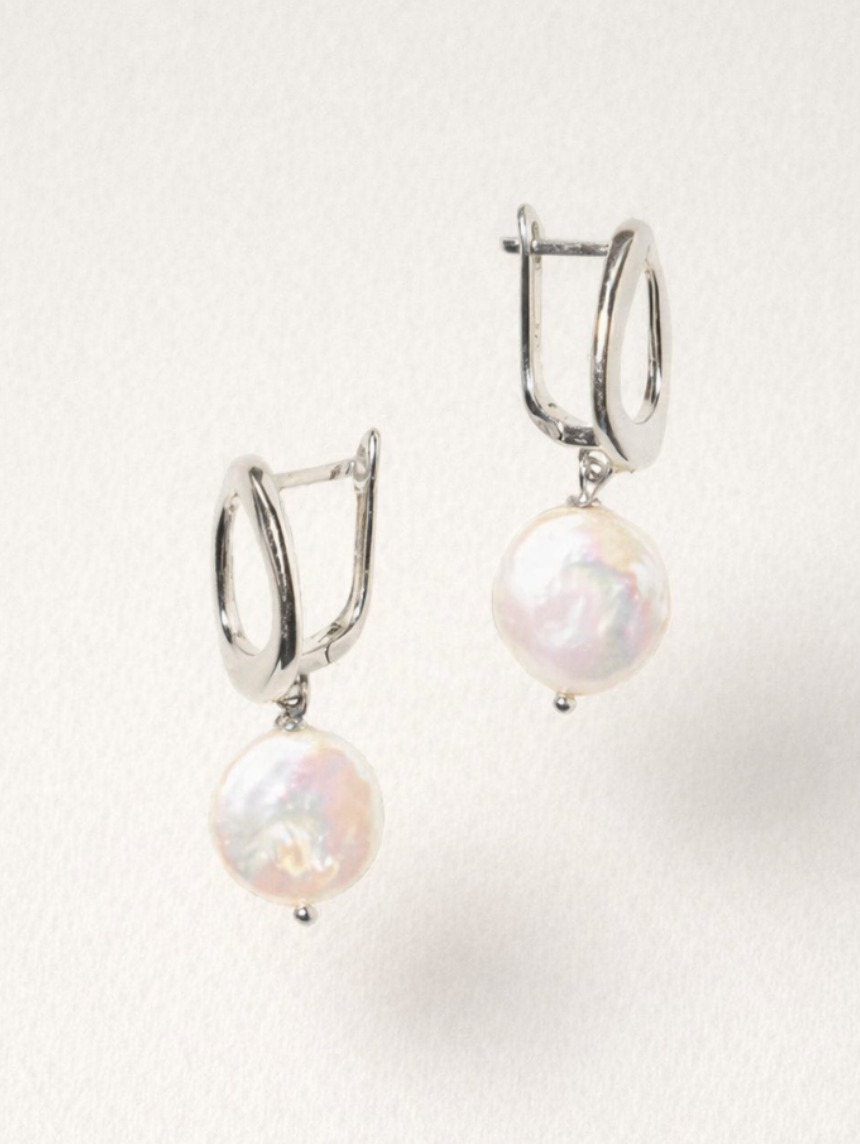 Серьги-конго «Old Money. Silver», родированная латунь, перламутр
