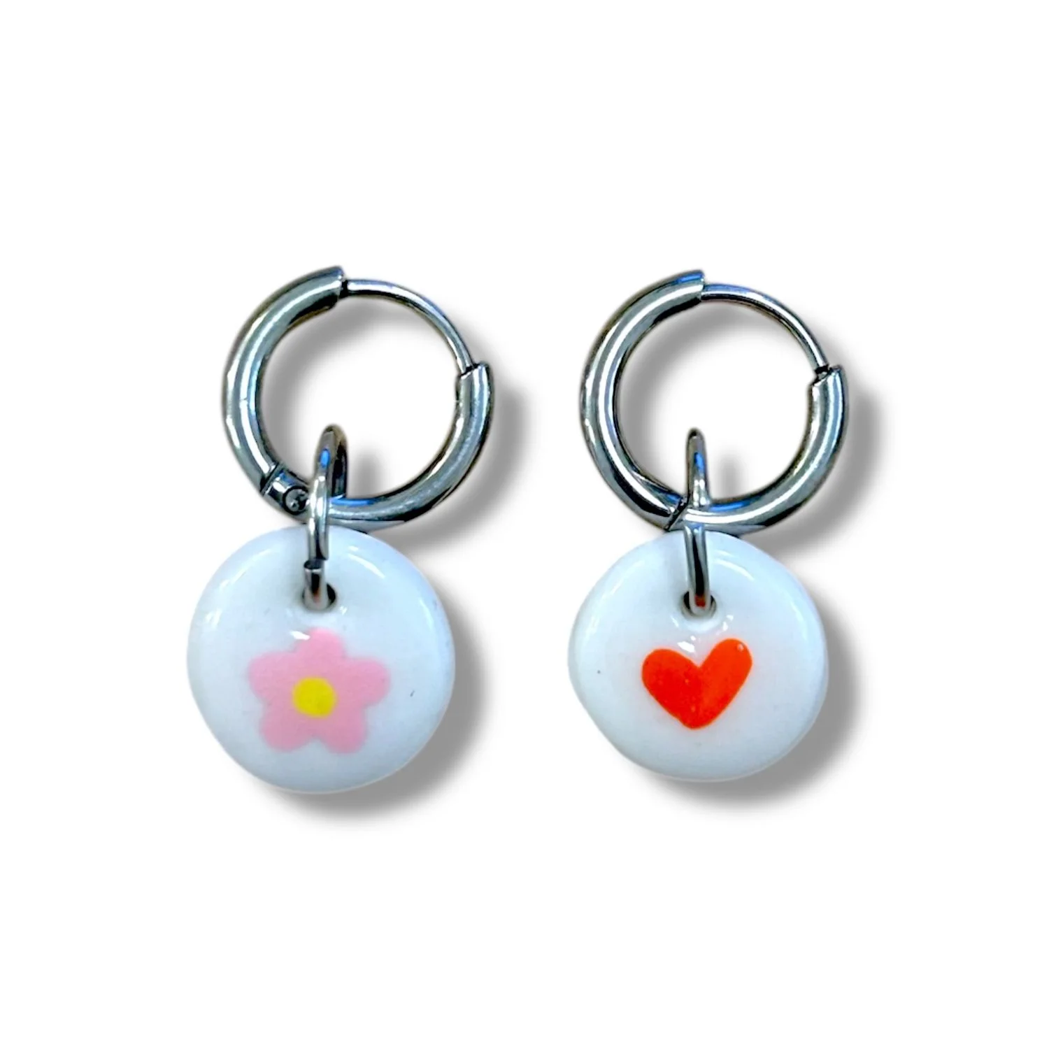 Серьги-конго Радость Рядом «Розовый цветочек и сердечко», полимерная глина, белые