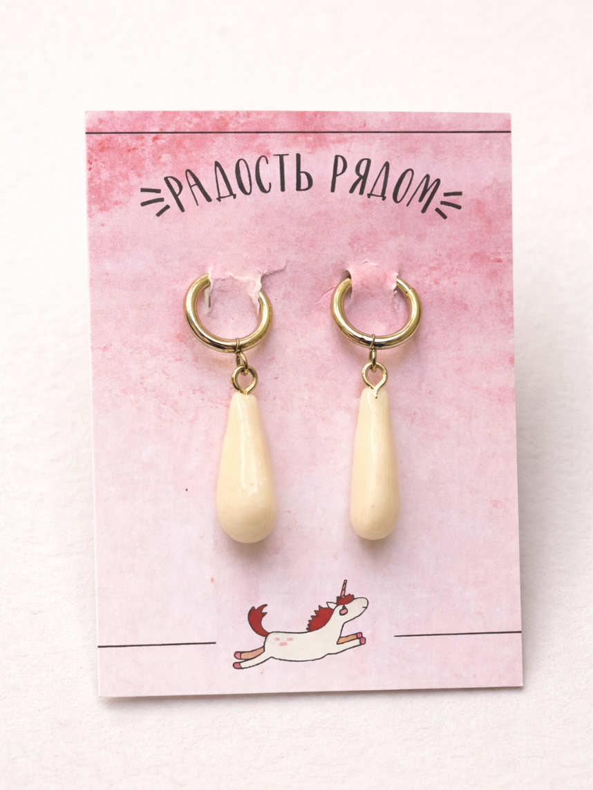 Серьги-конго Радость Рядом «Капли», полимерная глина, белые
