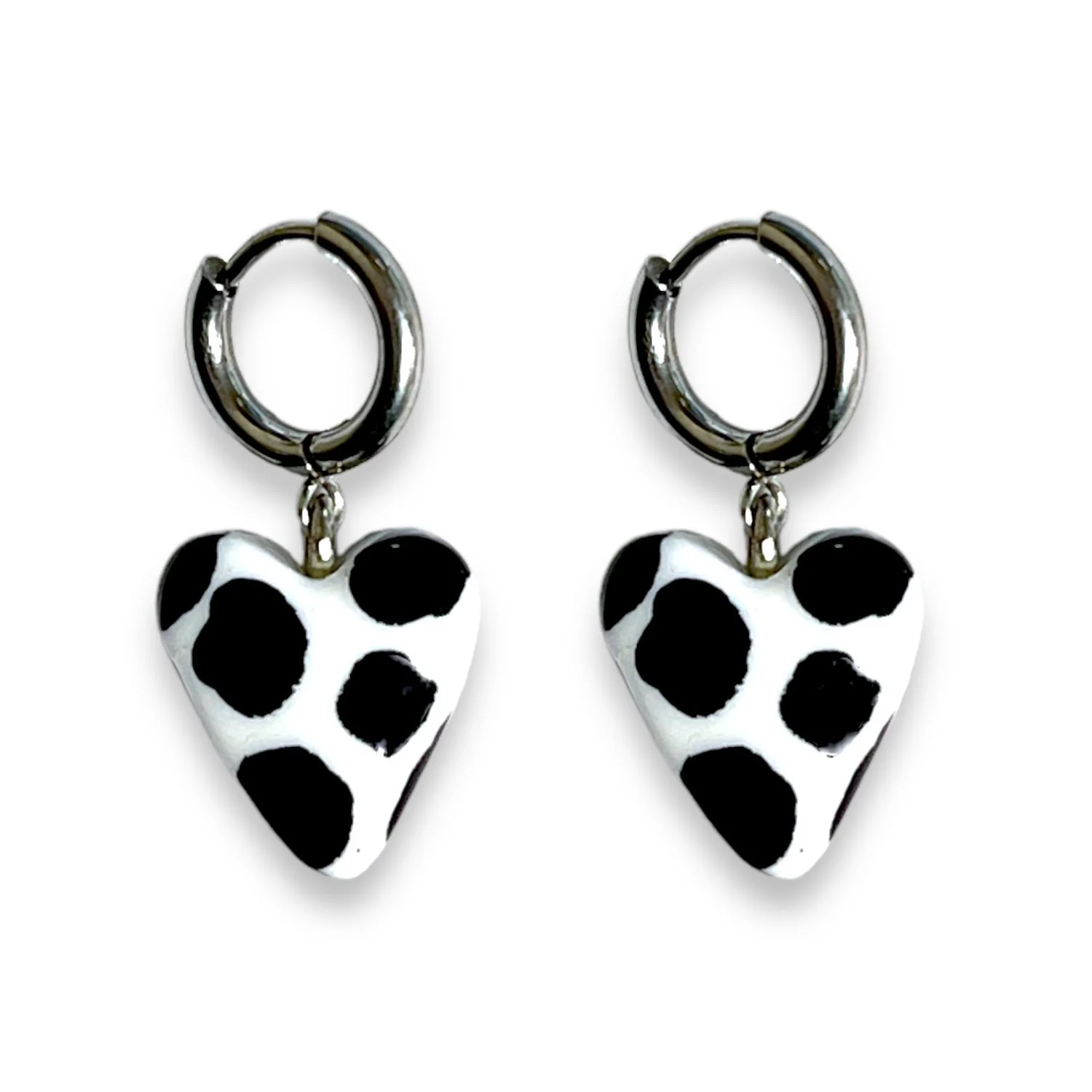 Серьги-конго Радость Рядом Сердечки с принтом, полимерная глина, чёрно-белые