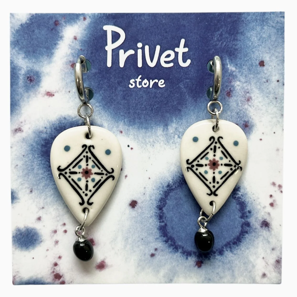 Керамические серьги висячие «Орнамент» ручной работы. Производитель - московский бренд «Privet Store».