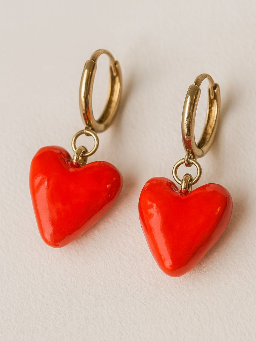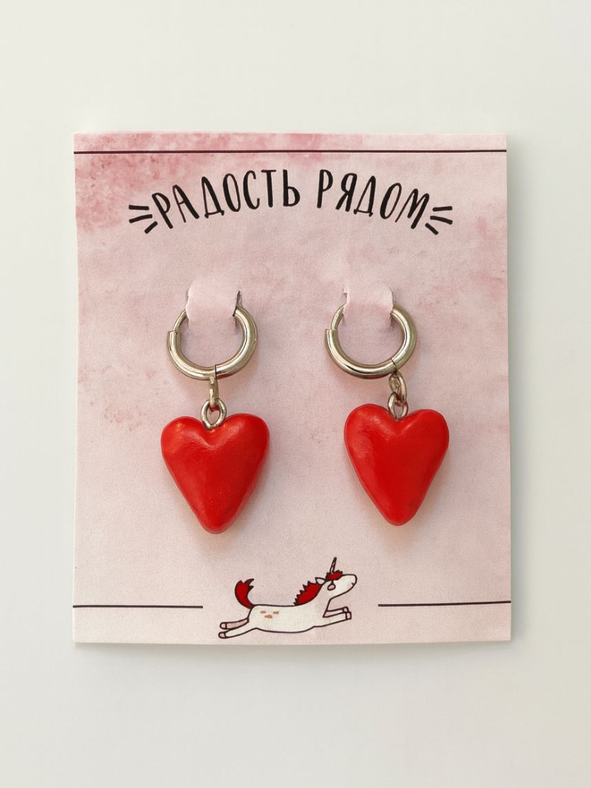 Милые серьги «Сердечки» ярко-красного цвета. Отличный подарок для себя или подруги.