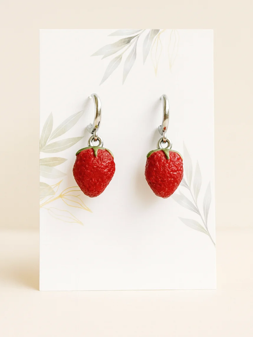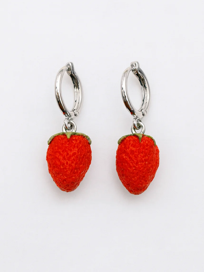 Серьги-конго «Земляника» созданы из запекаемой полимерной глины вручную талантливым мастером Яной Насоновой.