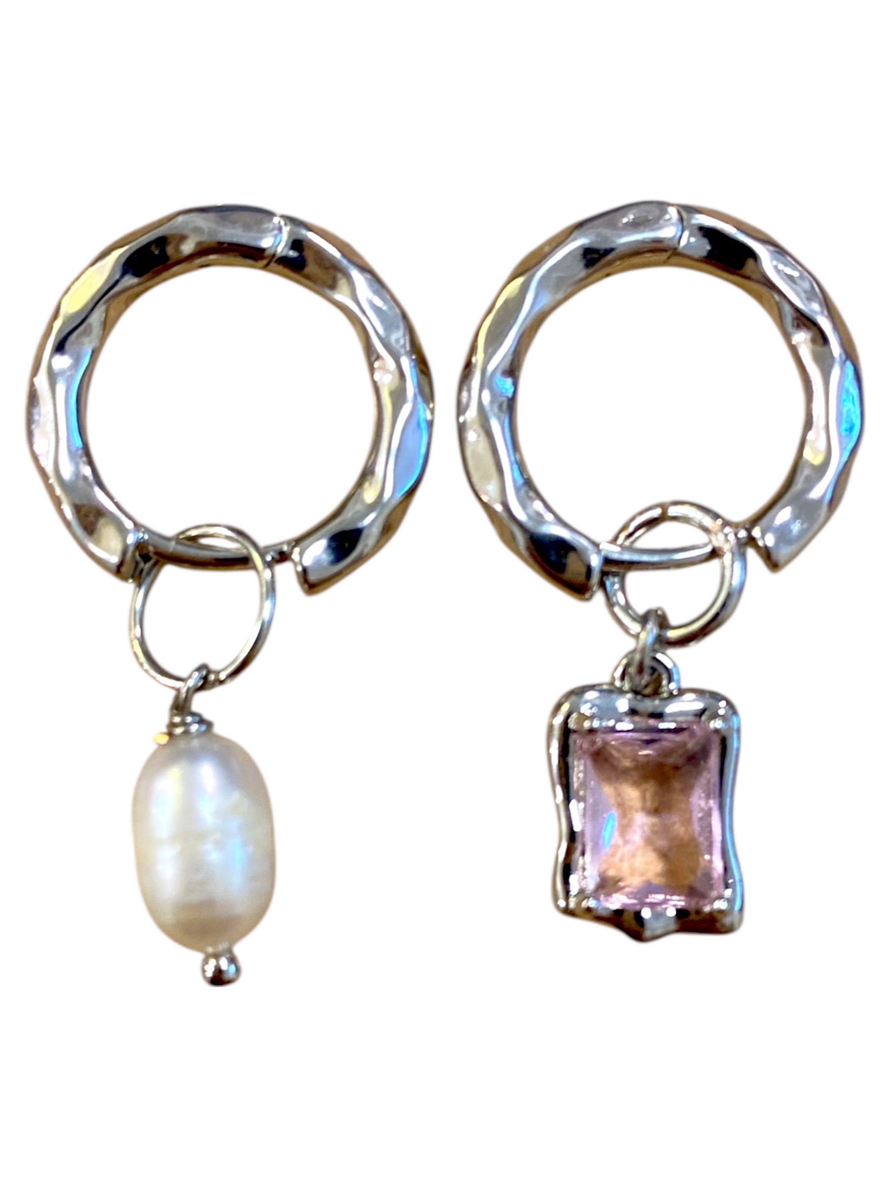 Серьги с подвесками натурального речного жемчуга и ювелирного стекла.