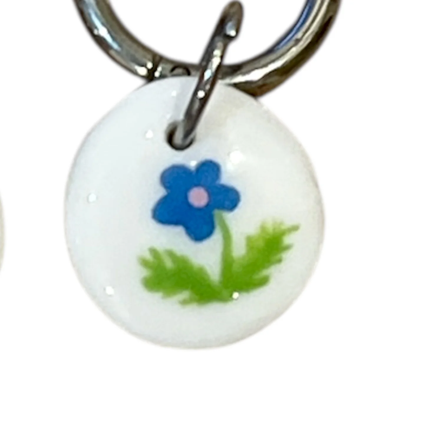 Серьги-конго с овальном подвеской «Голубой цветочек», полимерная глина