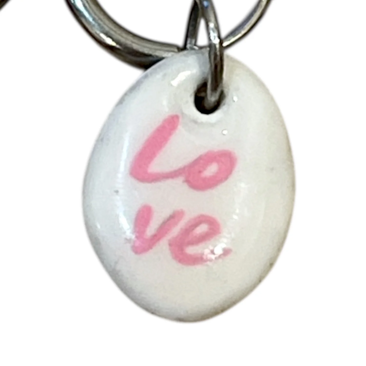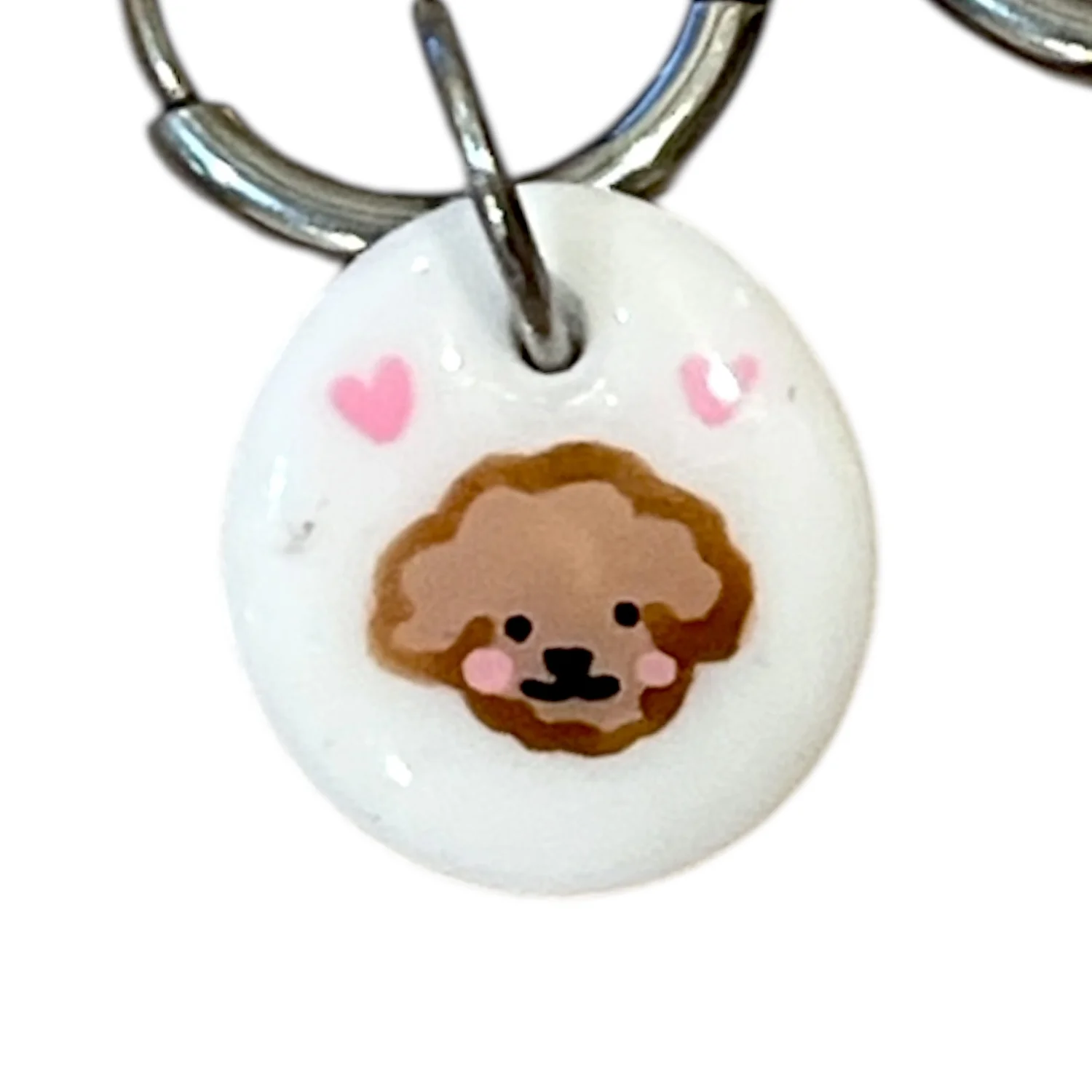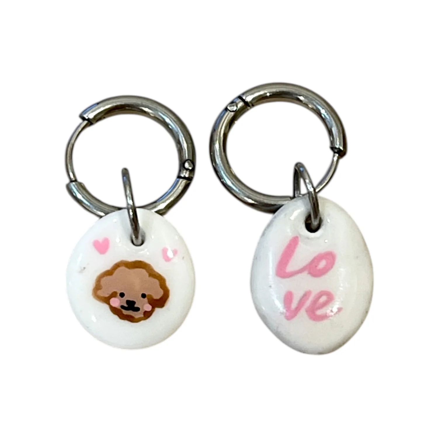 Серьги-конго Радость Рядом с овальной подвеской «Собачка и Love», полимерная глина, белые