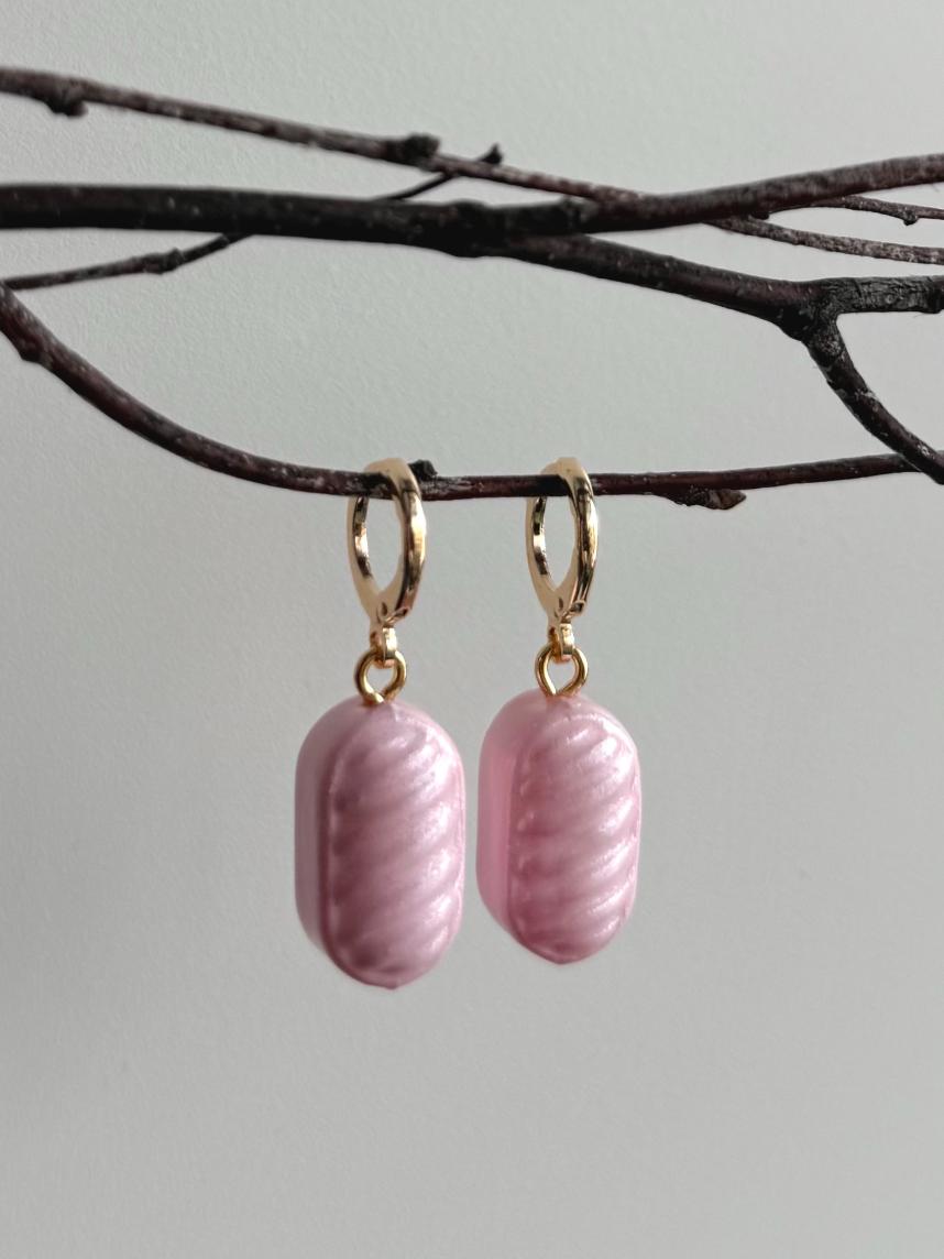 Серьги-конго Счастливые истории «Карамельки», полимерная глина, розовые