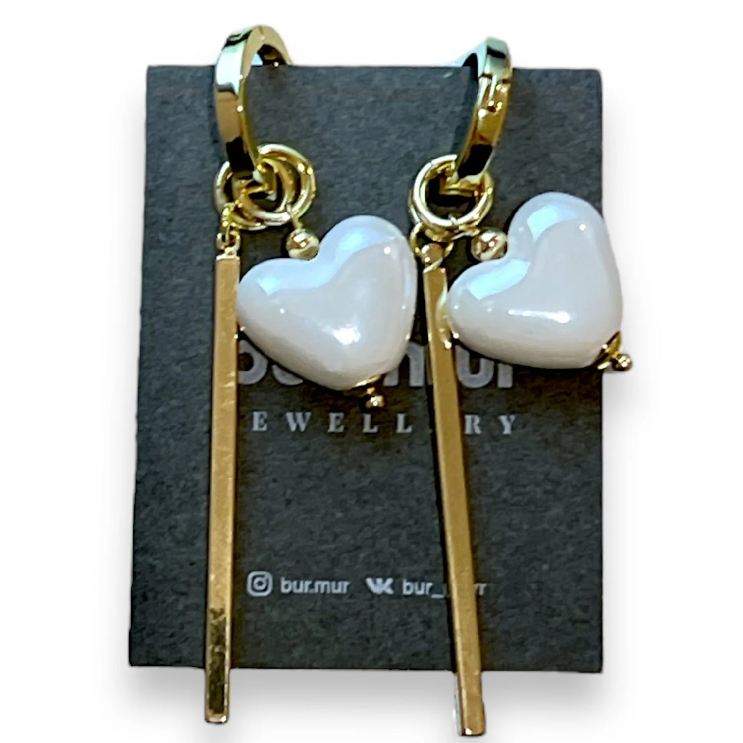 Серьги-конструкторы Бур.Мур mini «Сердечки с планкой», латунь, керамика