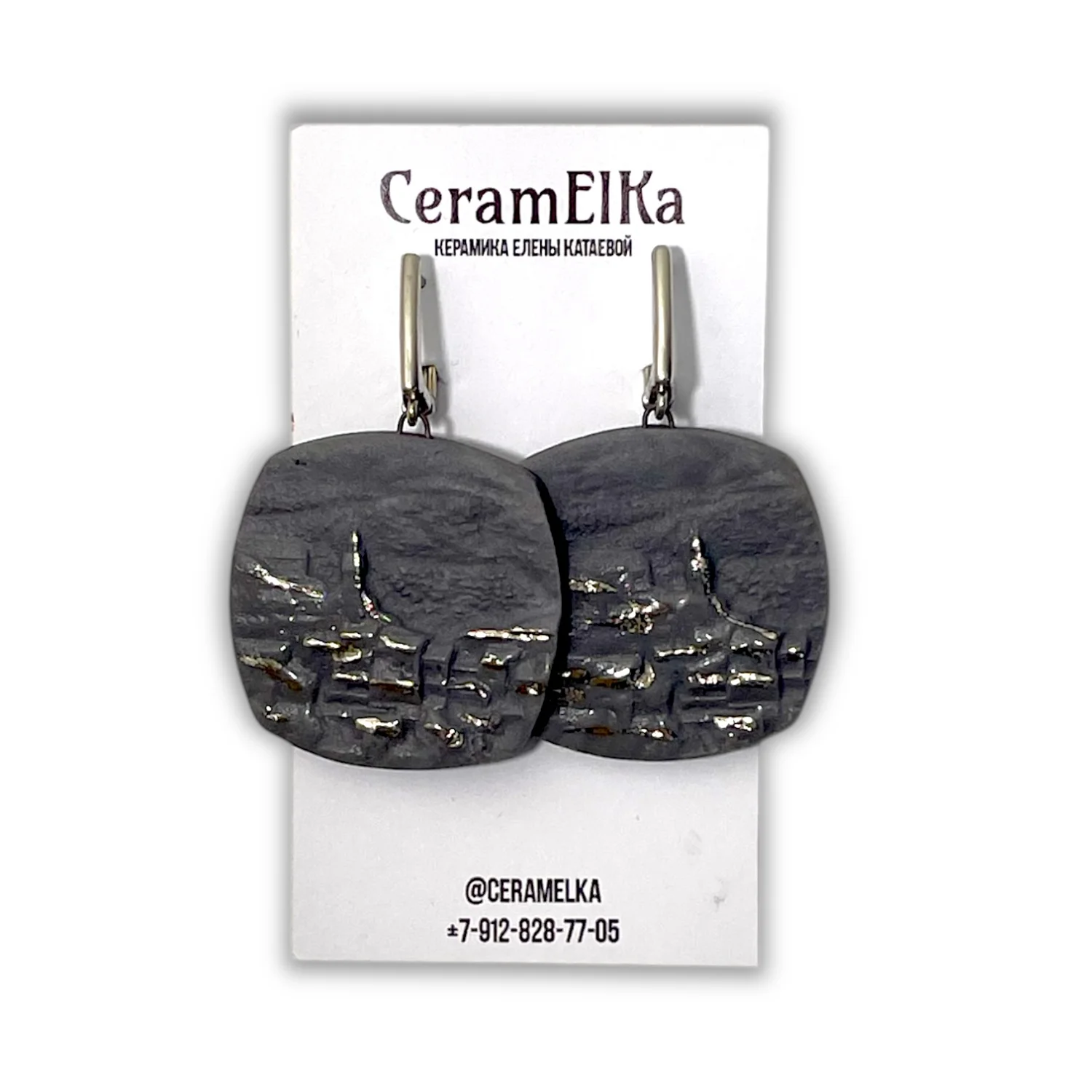 Серьги КерамЕлКа «Контуры города», фарфор, серые
